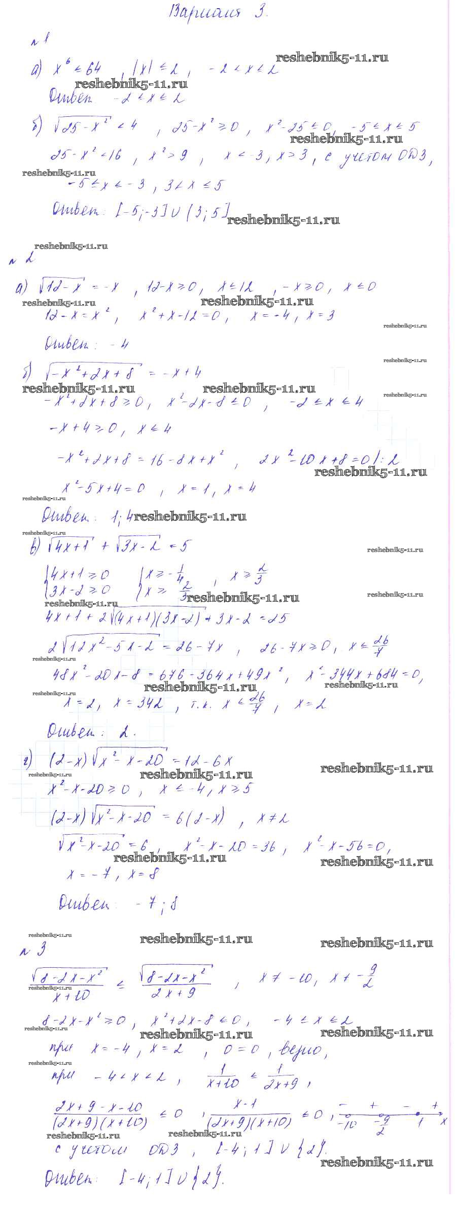 Готовая домашняя работа с ответами по Алгебре за 9 класс Зив, Гольдич Дидактические материалы Виктория плюс 2013 ФГОС - СР-11. Неравенства и уравнения, содержащие степень вариант 3