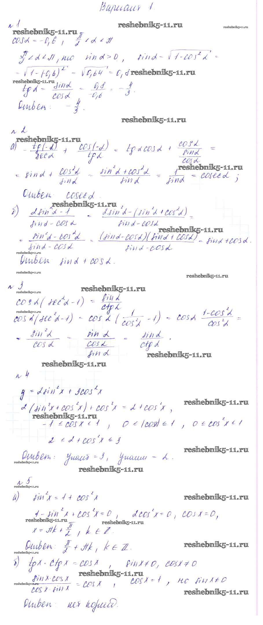 Готовая домашняя работа с ответами по Алгебре за 9 класс Зив, Гольдич Дидактические материалы Виктория плюс 2013 ФГОС - СР-13. Тригонометрические тождества вариант 1