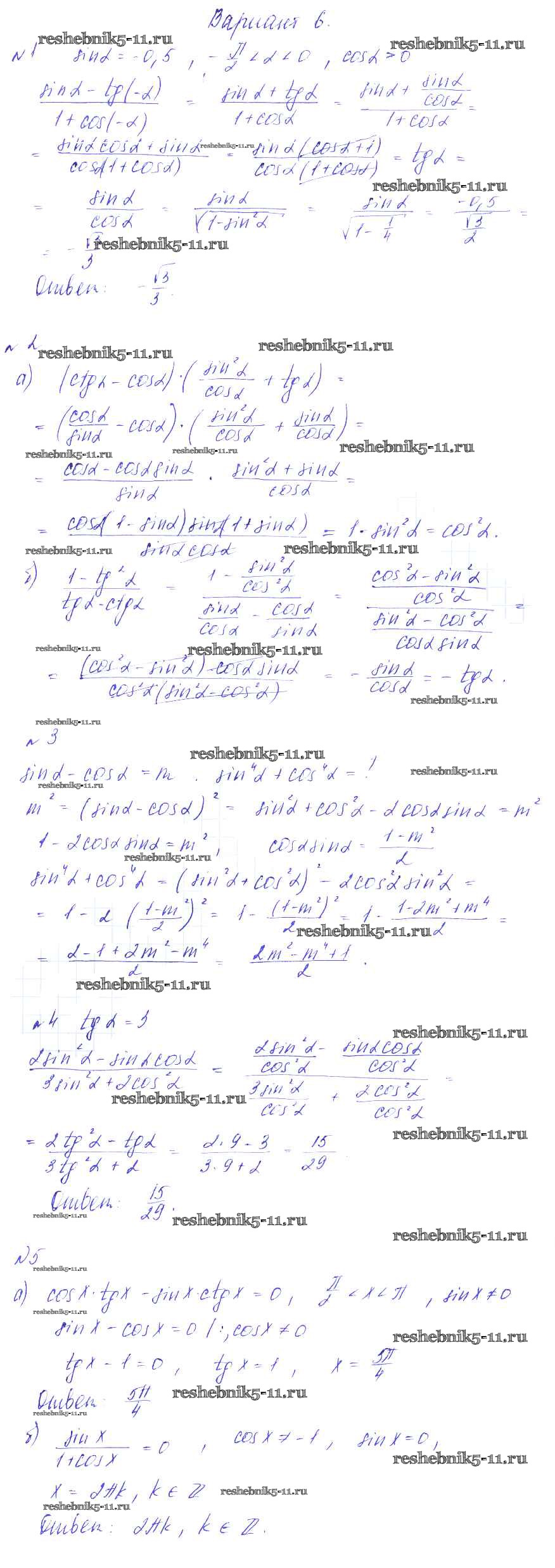 Готовая домашняя работа с ответами по Алгебре за 9 класс Зив, Гольдич Дидактические материалы Виктория плюс 2013 ФГОС - СР-13. Тригонометрические тождества вариант 6