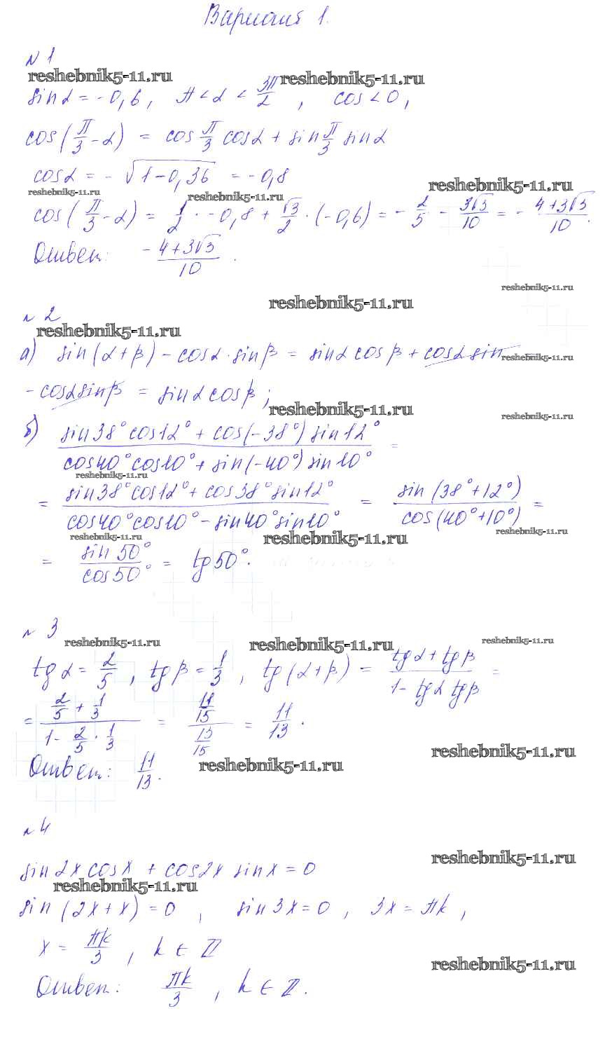 Готовая домашняя работа с ответами по Алгебре за 9 класс Зив, Гольдич Дидактические материалы Виктория плюс 2013 ФГОС - СР-14. Формулы сложения вариант 1