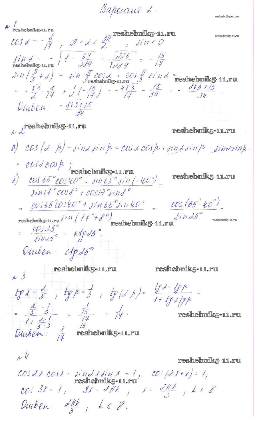 Готовая домашняя работа с ответами по Алгебре за 9 класс Зив, Гольдич Дидактические материалы Виктория плюс 2013 ФГОС - СР-14. Формулы сложения вариант 2