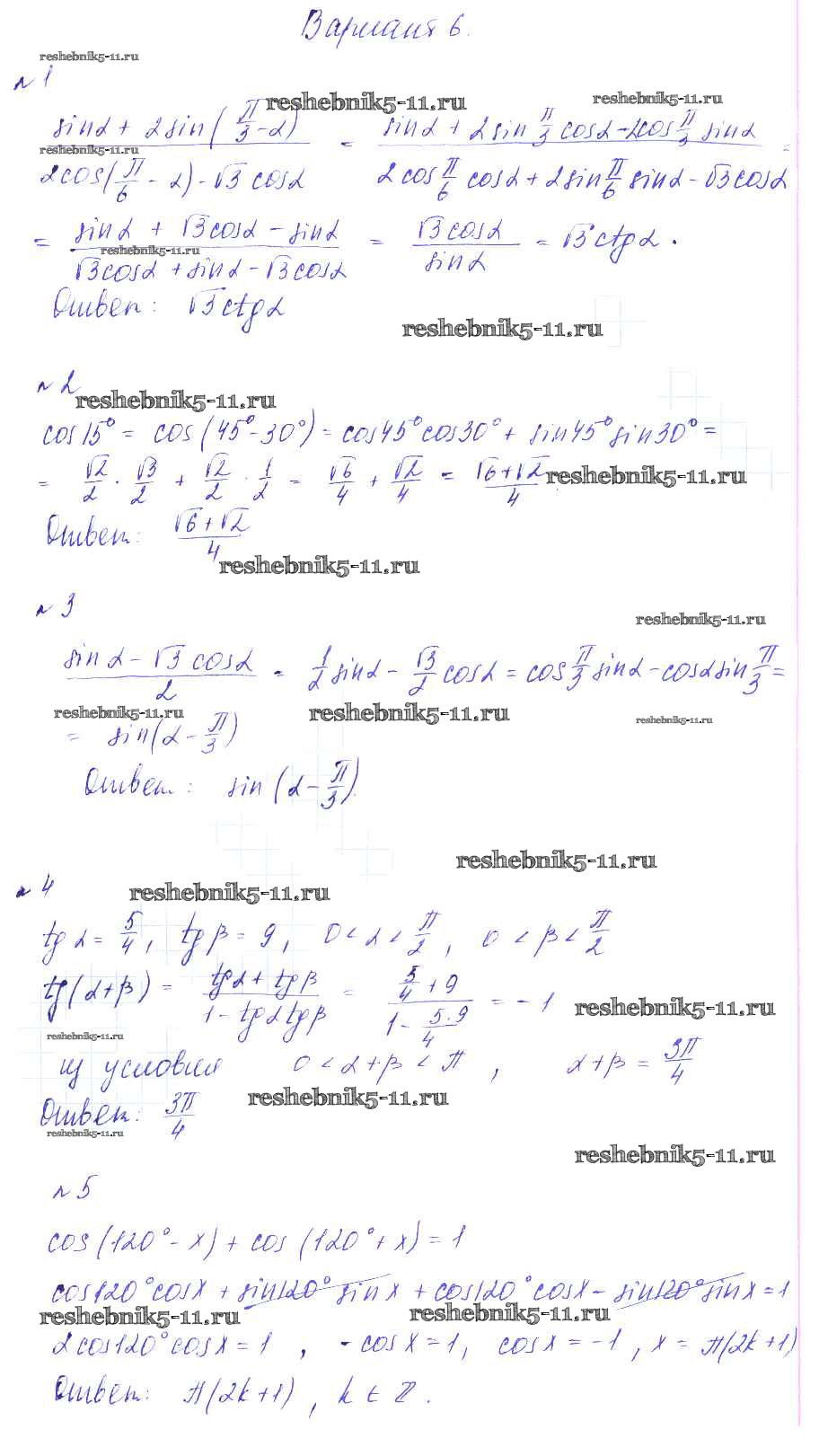 Готовая домашняя работа с ответами по Алгебре за 9 класс Зив, Гольдич Дидактические материалы Виктория плюс 2013 ФГОС - СР-14. Формулы сложения вариант 6