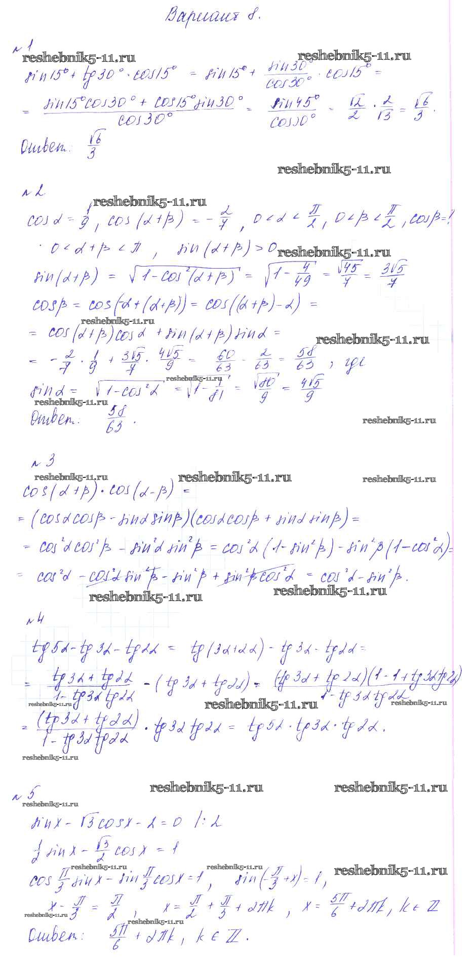 Готовая домашняя работа с ответами по Алгебре за 9 класс Зив, Гольдич Дидактические материалы Виктория плюс 2013 ФГОС - СР-14. Формулы сложения вариант 8