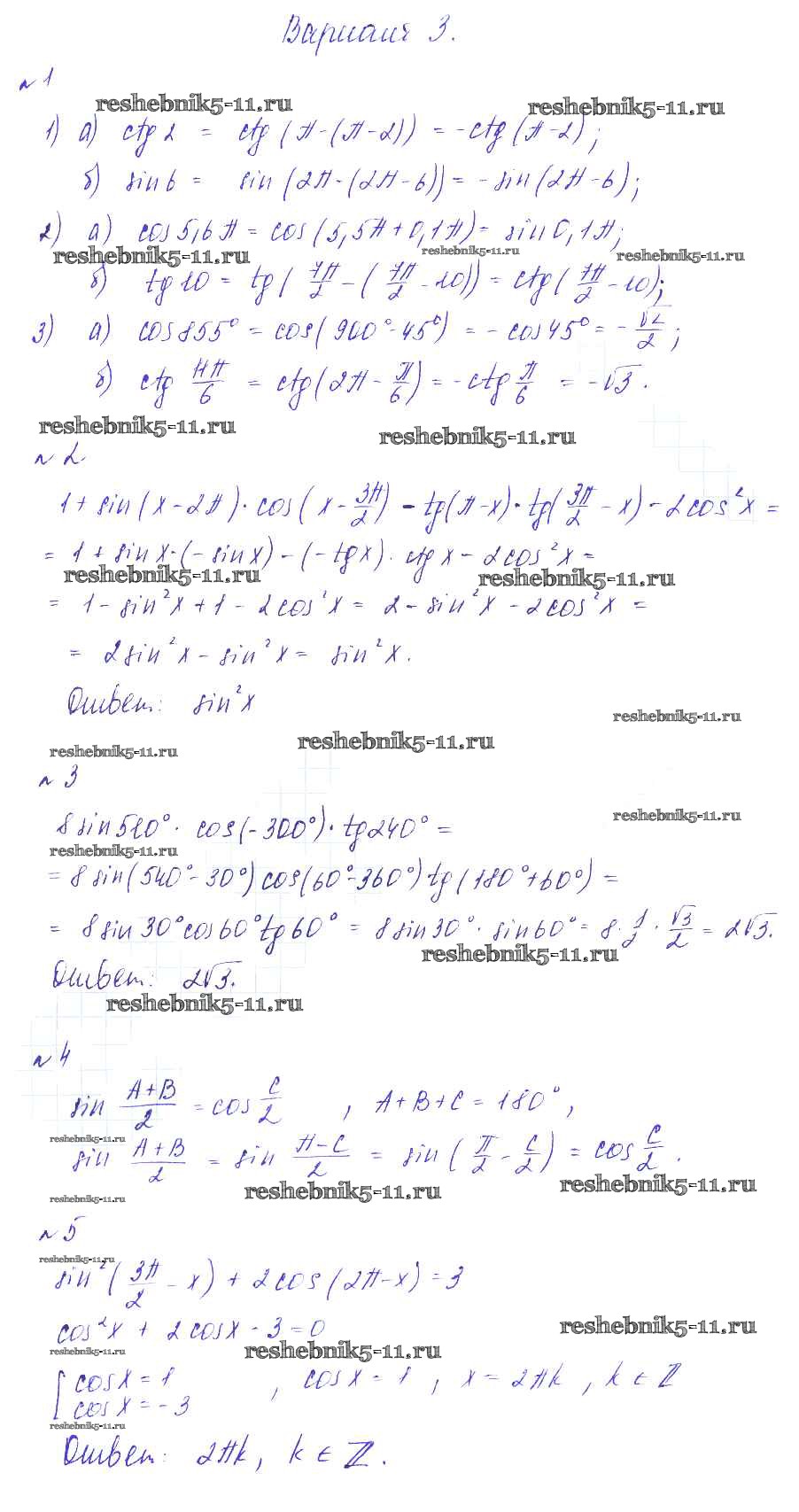 Готовая домашняя работа с ответами по Алгебре за 9 класс Зив, Гольдич Дидактические материалы Виктория плюс 2013 ФГОС - СР-16. Формулы приведения вариант 3