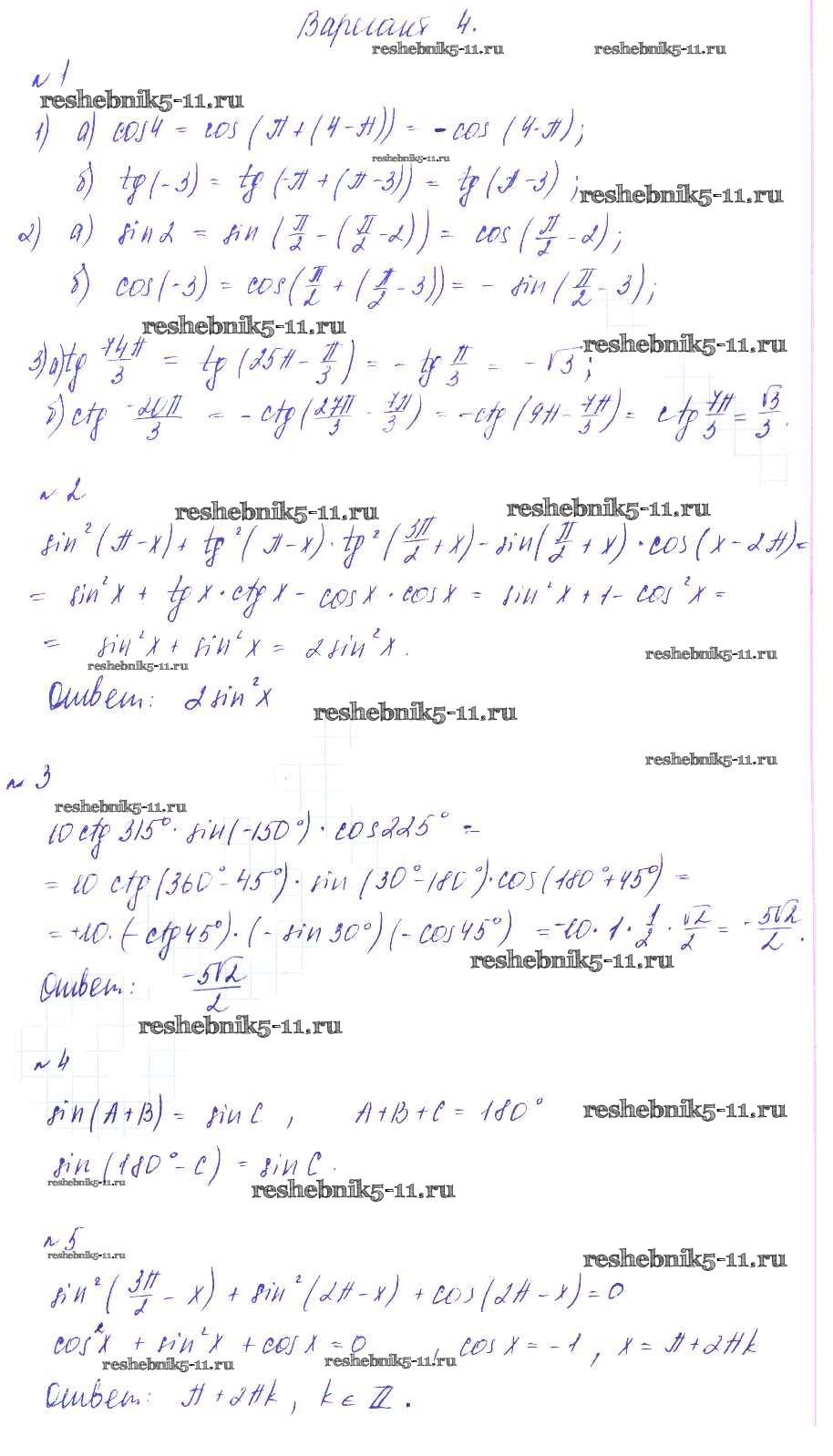 Готовая домашняя работа с ответами по Алгебре за 9 класс Зив, Гольдич Дидактические материалы Виктория плюс 2013 ФГОС - СР-16. Формулы приведения вариант 4