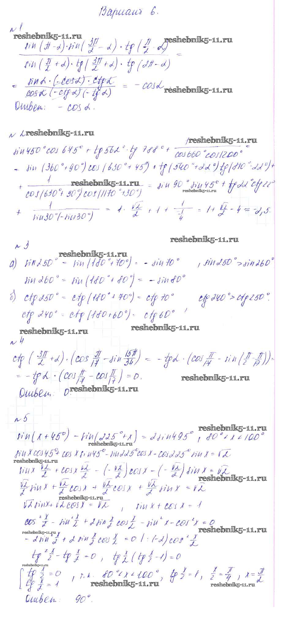 Готовая домашняя работа с ответами по Алгебре за 9 класс Зив, Гольдич Дидактические материалы Виктория плюс 2013 ФГОС - СР-16. Формулы приведения вариант 6