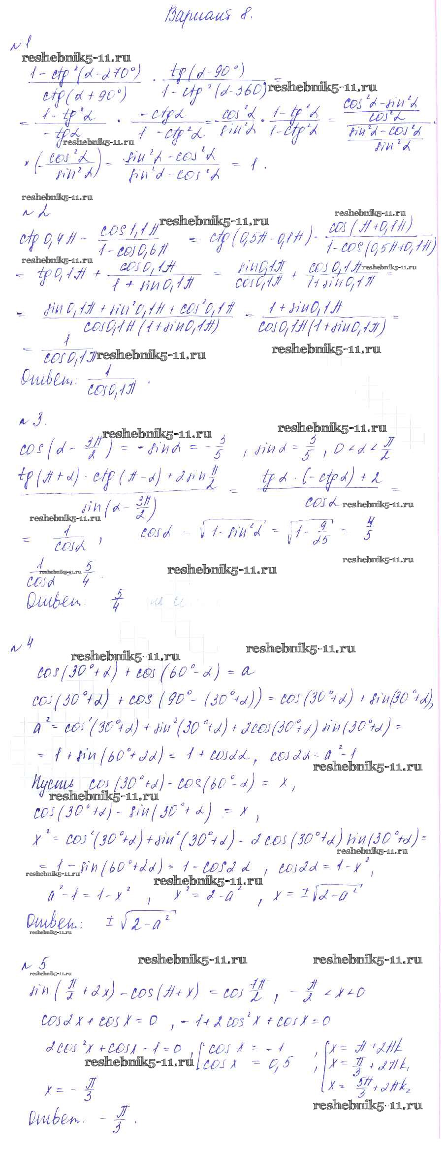 Готовая домашняя работа с ответами по Алгебре за 9 класс Зив, Гольдич Дидактические материалы Виктория плюс 2013 ФГОС - СР-16. Формулы приведения вариант 8