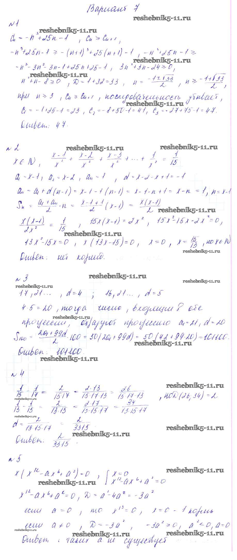 Готовая домашняя работа с ответами по Алгебре за 9 класс Зив, Гольдич Дидактические материалы Виктория плюс 2013 ФГОС - СР-17. Арифметическая прогрессия вариант 7
