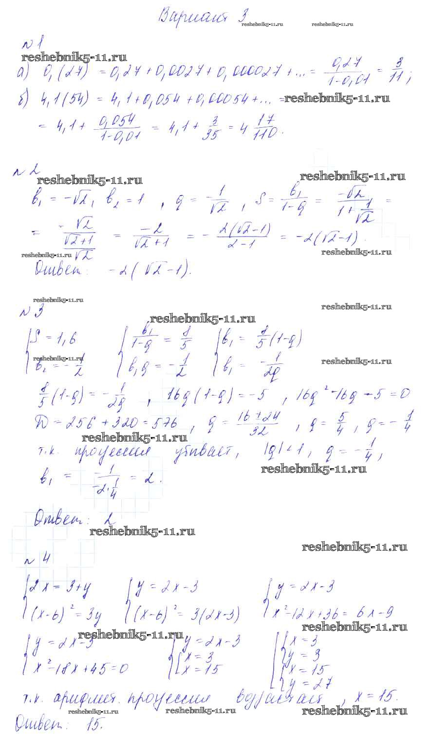Готовая домашняя работа с ответами по Алгебре за 9 класс Зив, Гольдич Дидактические материалы Виктория плюс 2013 ФГОС - СР-19. Бесконечно убывающая геометрическая прогрессия. Смешанные задачи на прогрессии вариант 3