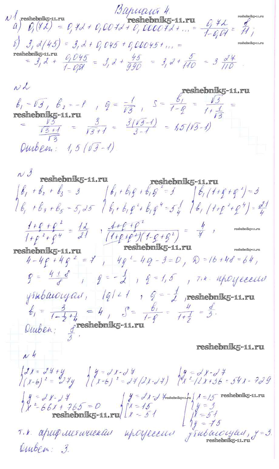 Готовая домашняя работа с ответами по Алгебре за 9 класс Зив, Гольдич Дидактические материалы Виктория плюс 2013 ФГОС - СР-19. Бесконечно убывающая геометрическая прогрессия. Смешанные задачи на прогрессии вариант 4