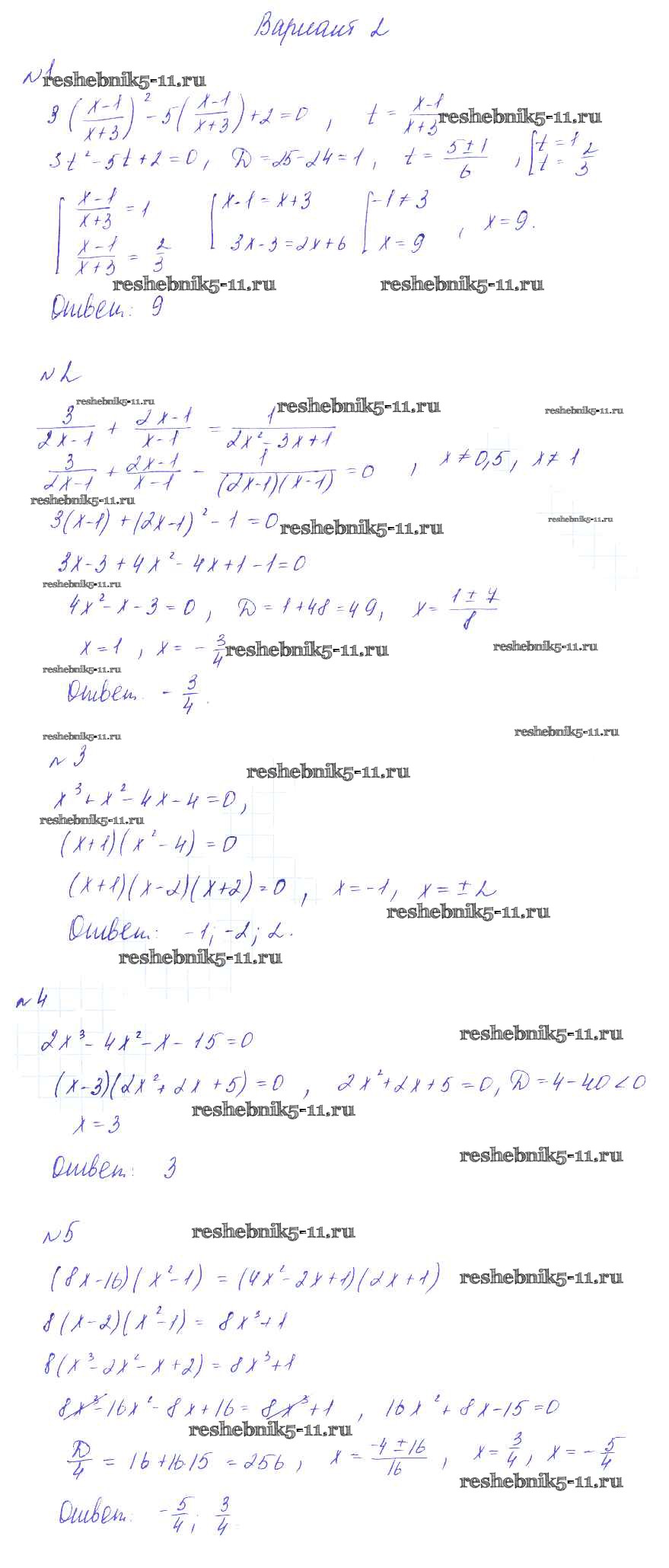 Готовая домашняя работа с ответами по Алгебре за 9 класс Зив, Гольдич Дидактические материалы Виктория плюс 2013 ФГОС - СР-2. Уравнения, сводящиеся к алгебраическим вариант 2