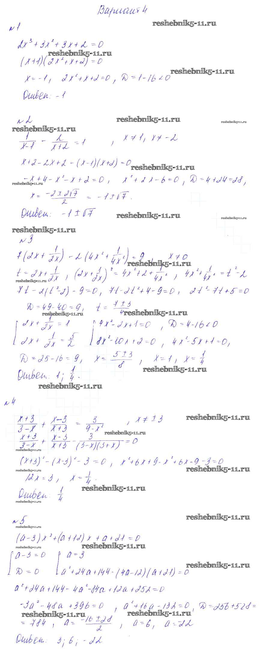Готовая домашняя работа с ответами по Алгебре за 9 класс Зив, Гольдич Дидактические материалы Виктория плюс 2013 ФГОС - СР-2. Уравнения, сводящиеся к алгебраическим вариант 4
