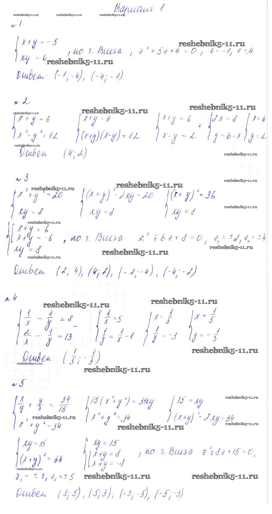 Готовая домашняя работа с ответами по Алгебре за 9 класс Зив, Гольдич Дидактические материалы Виктория плюс 2013 ФГОС - СР-3. Системы нелинейных уравнений вариант 1