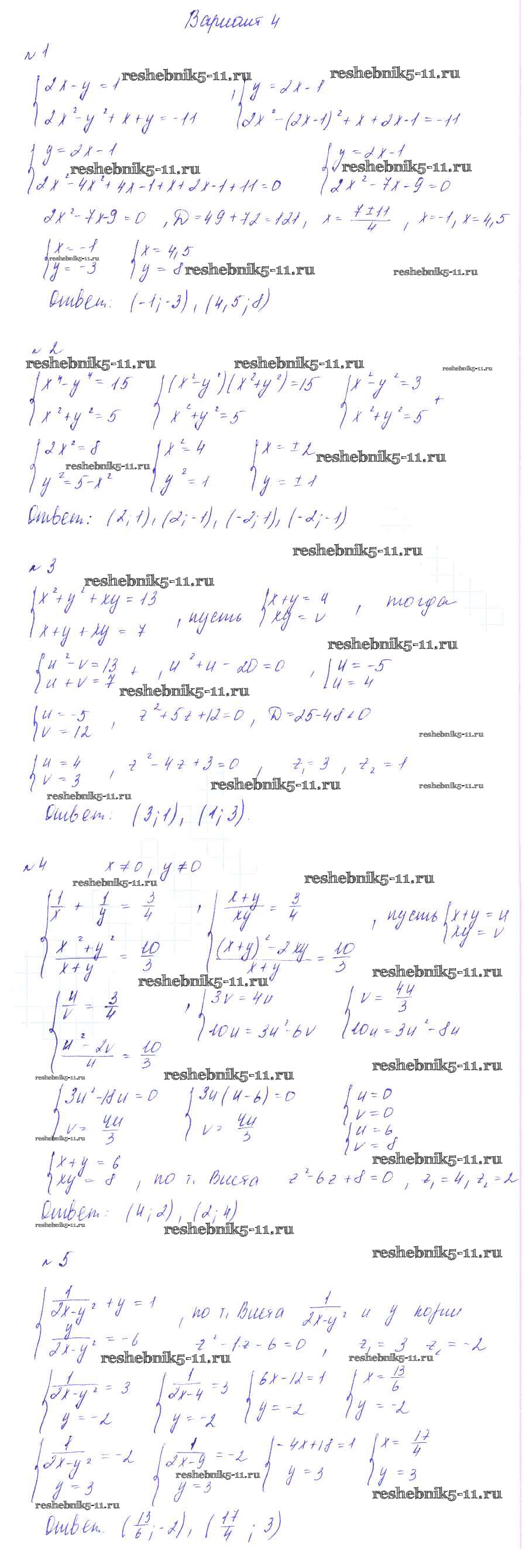 Готовая домашняя работа с ответами по Алгебре за 9 класс Зив, Гольдич Дидактические материалы Виктория плюс 2013 ФГОС - СР-3. Системы нелинейных уравнений вариант 4