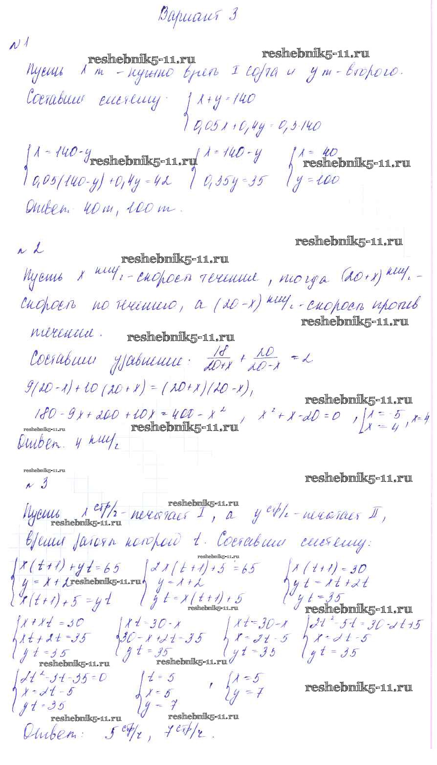 Готовая домашняя работа с ответами по Алгебре за 9 класс Зив, Гольдич Дидактические материалы Виктория плюс 2013 ФГОС - СР-4. Решение задач с помощью уравнений вариант 3