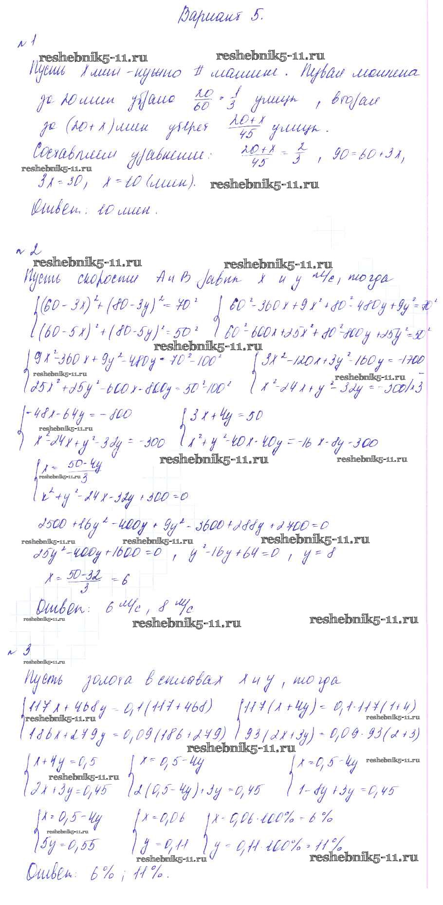 Готовая домашняя работа с ответами по Алгебре за 9 класс Зив, Гольдич Дидактические материалы Виктория плюс 2013 ФГОС - СР-4. Решение задач с помощью уравнений вариант 5