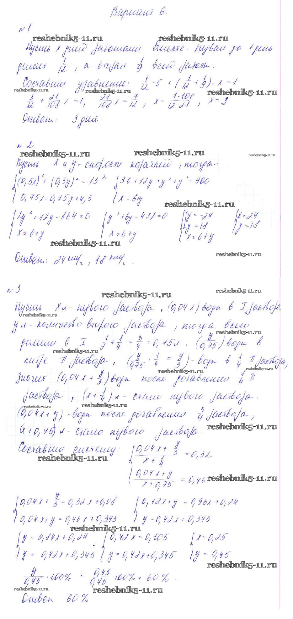 Готовая домашняя работа с ответами по Алгебре за 9 класс Зив, Гольдич Дидактические материалы Виктория плюс 2013 ФГОС - СР-4. Решение задач с помощью уравнений вариант 6