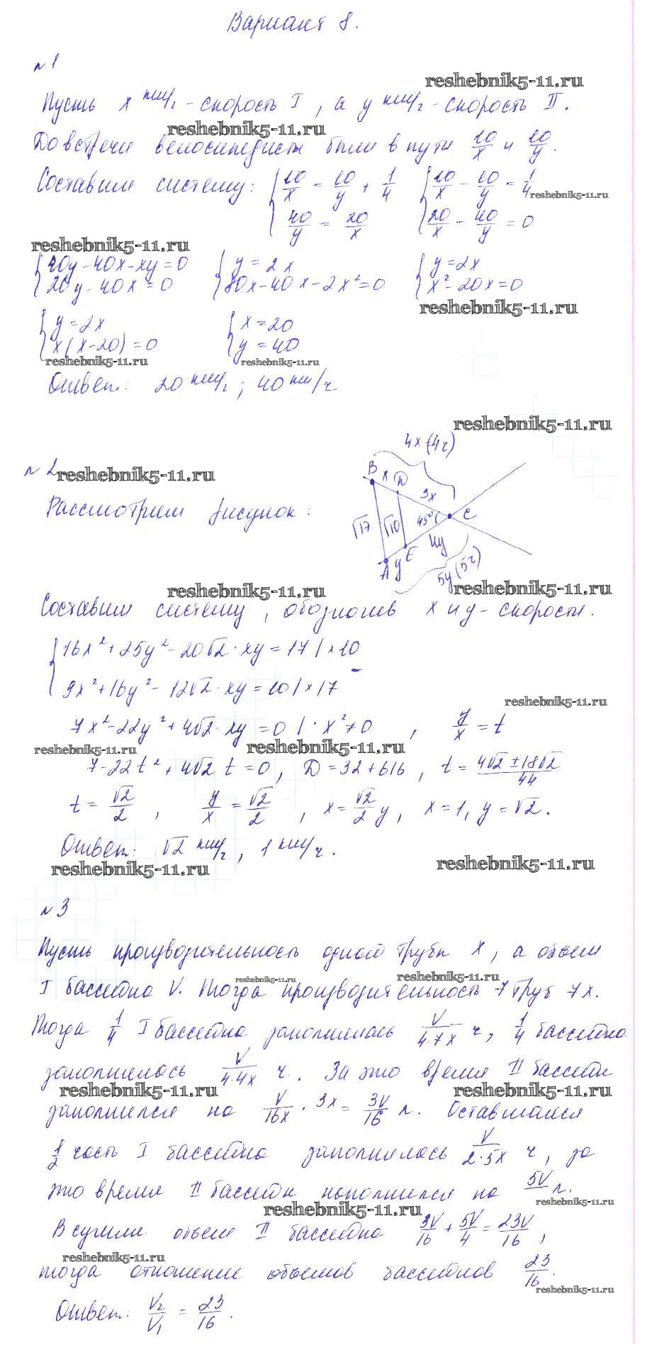 Готовая домашняя работа с ответами по Алгебре за 9 класс Зив, Гольдич Дидактические материалы Виктория плюс 2013 ФГОС - СР-4. Решение задач с помощью уравнений вариант 8