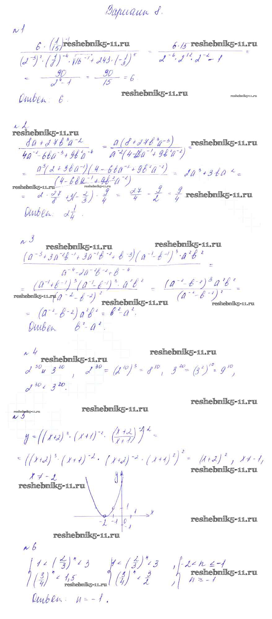 Готовая домашняя работа с ответами по Алгебре за 9 класс Зив, Гольдич Дидактические материалы Виктория плюс 2013 ФГОС - СР-5. Степень с целым показателем вариант 8