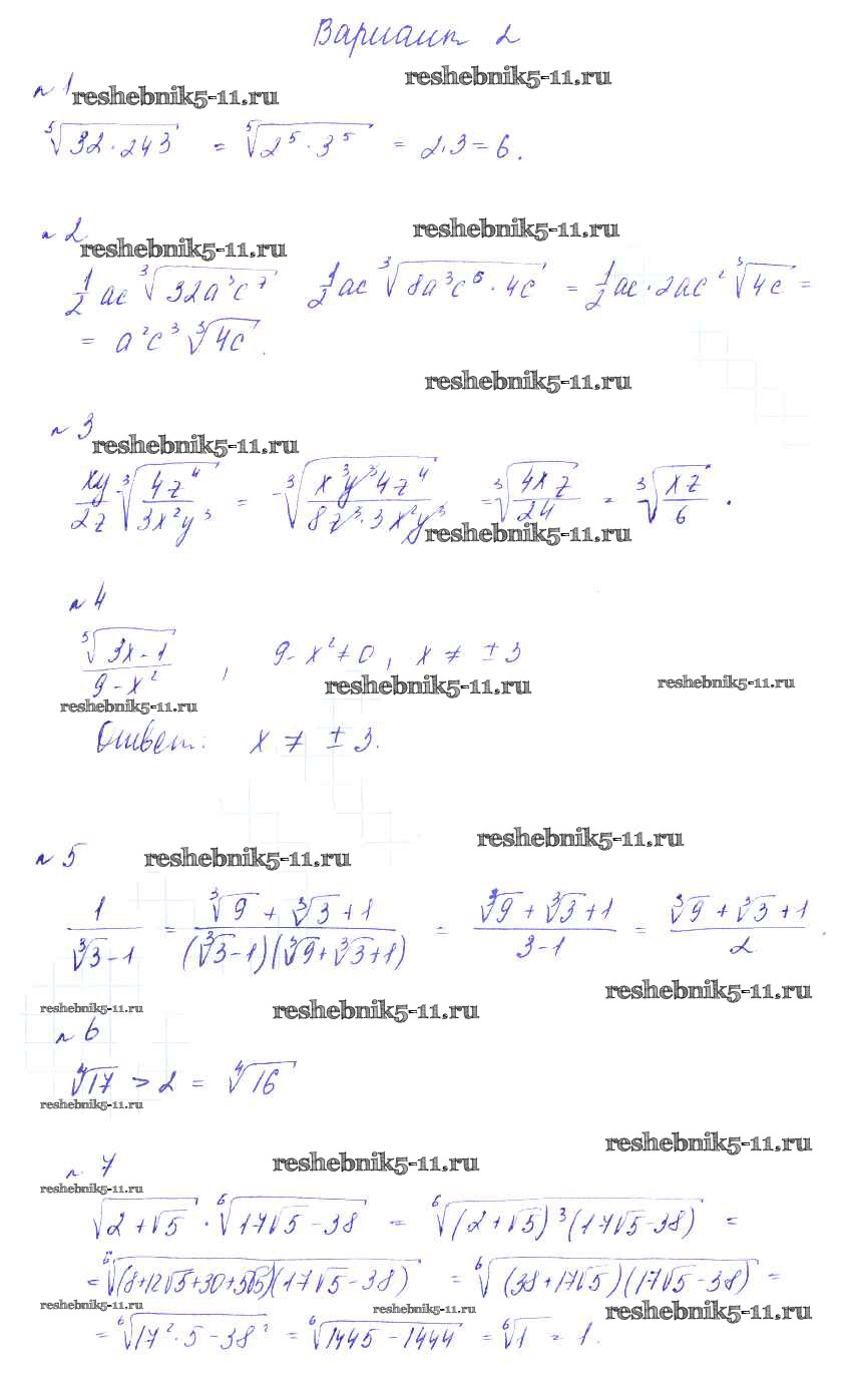 Готовая домашняя работа с ответами по Алгебре за 9 класс Зив, Гольдич Дидактические материалы Виктория плюс 2013 ФГОС - СР-6. Корень натуральной степени вариант 2
