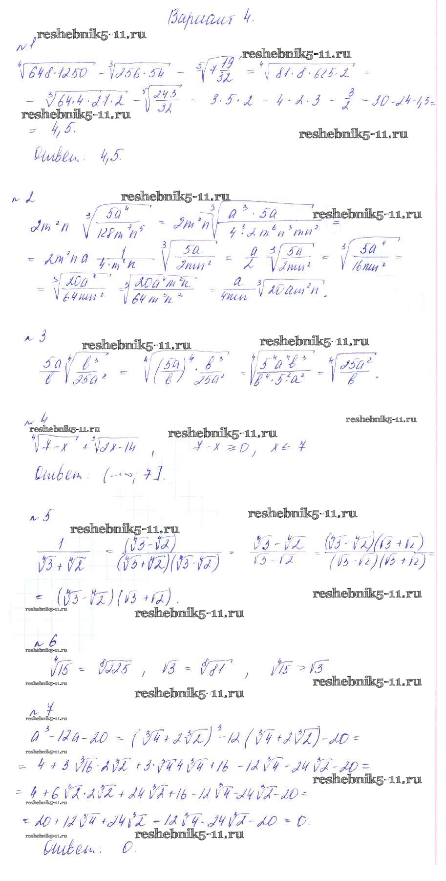 Готовая домашняя работа с ответами по Алгебре за 9 класс Зив, Гольдич Дидактические материалы Виктория плюс 2013 ФГОС - СР-6. Корень натуральной степени вариант 4