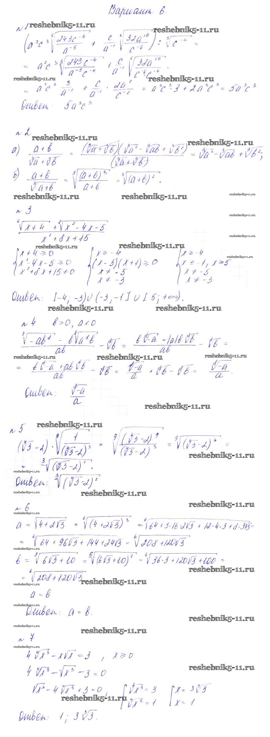 Готовая домашняя работа с ответами по Алгебре за 9 класс Зив, Гольдич Дидактические материалы Виктория плюс 2013 ФГОС - СР-6. Корень натуральной степени вариант 6