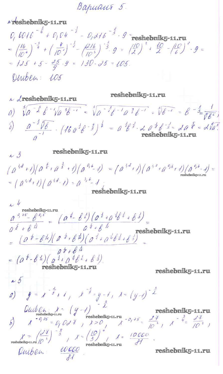 Готовая домашняя работа с ответами по Алгебре за 9 класс Зив, Гольдич Дидактические материалы Виктория плюс 2013 ФГОС - СР-7. Степень с рациональным показателем вариант 5