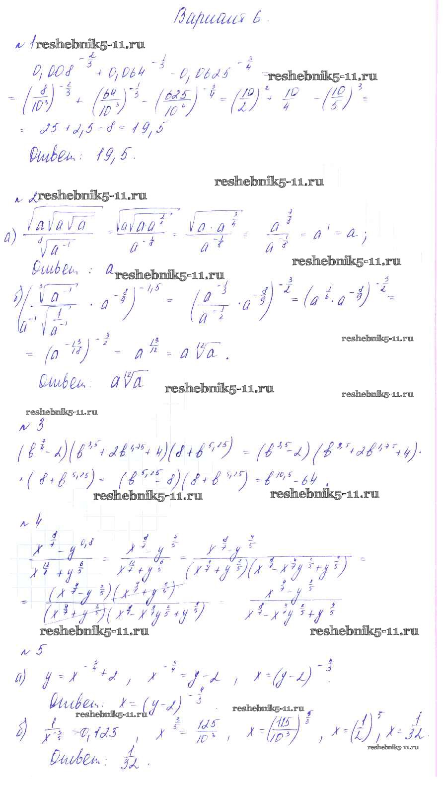 Готовая домашняя работа с ответами по Алгебре за 9 класс Зив, Гольдич Дидактические материалы Виктория плюс 2013 ФГОС - СР-7. Степень с рациональным показателем вариант 6