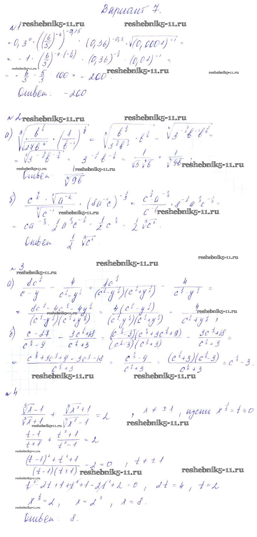Готовая домашняя работа с ответами по Алгебре за 9 класс Зив, Гольдич Дидактические материалы Виктория плюс 2013 ФГОС - СР-7. Степень с рациональным показателем вариант 7