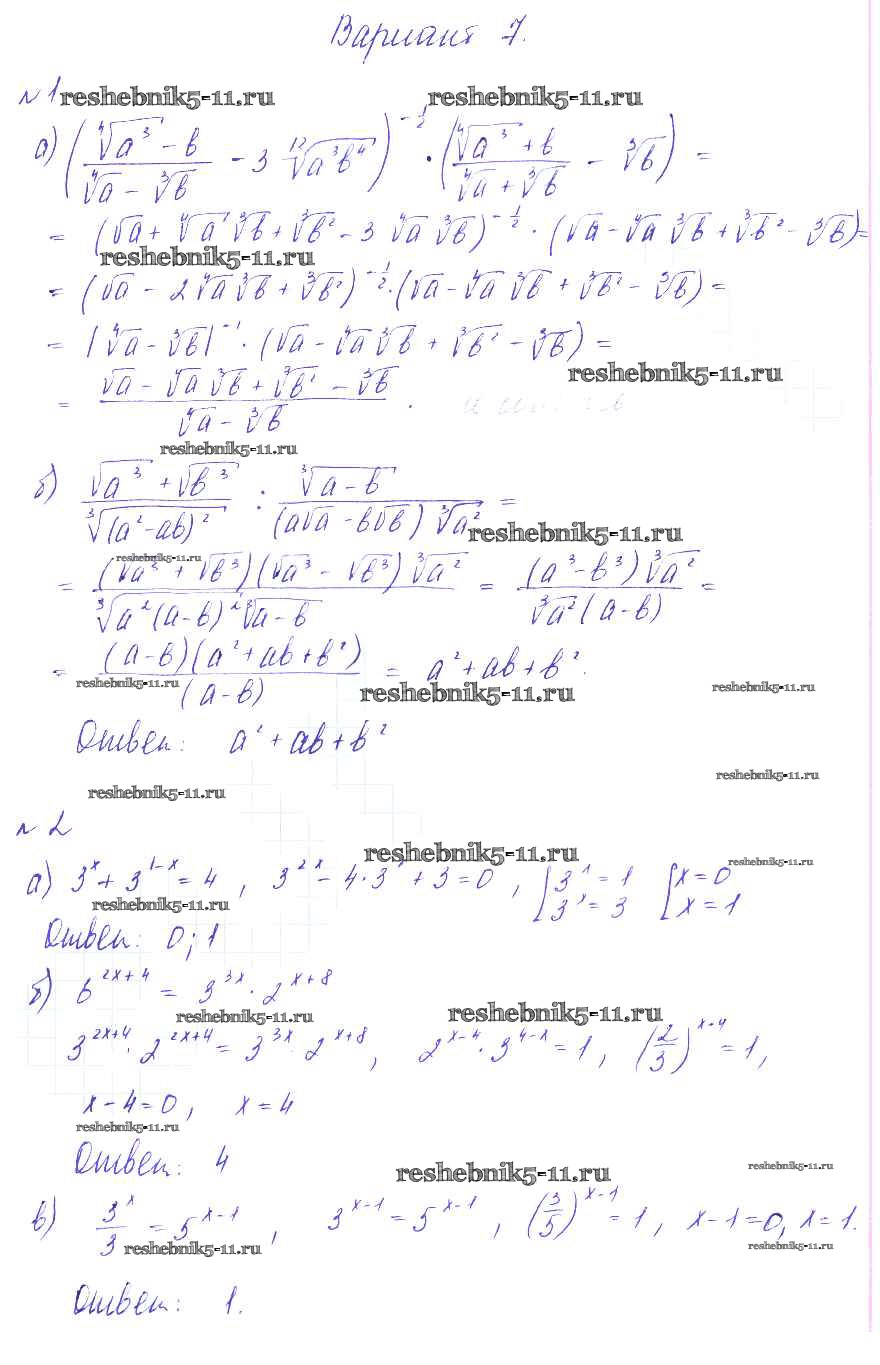 Готовая домашняя работа с ответами по Алгебре за 9 класс Зив, Гольдич Дидактические материалы Виктория плюс 2013 ФГОС - СР-8. Упражнения на все действия над радикалами и степенями вариант 7