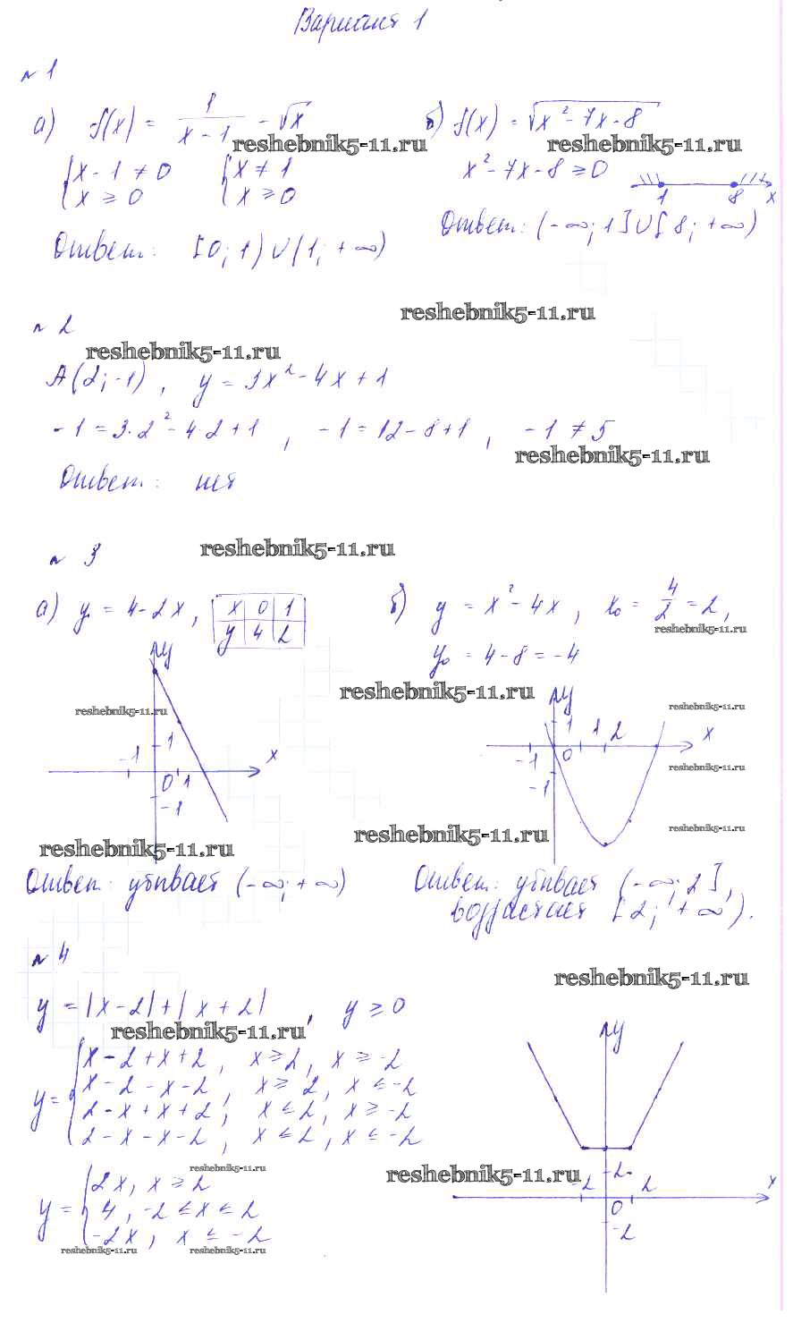 Готовая домашняя работа с ответами по Алгебре за 9 класс Зив, Гольдич Дидактические материалы Виктория плюс 2013 ФГОС - СР-9. Область определения функции. Возрастание и убывание функции вариант 1