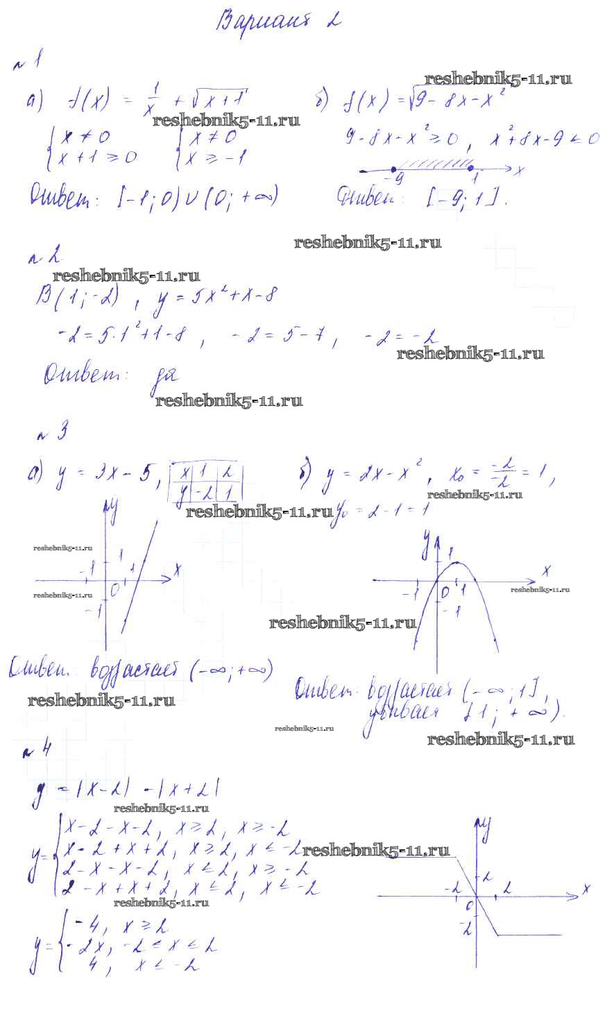Готовая домашняя работа с ответами по Алгебре за 9 класс Зив, Гольдич Дидактические материалы Виктория плюс 2013 ФГОС - СР-9. Область определения функции. Возрастание и убывание функции вариант 2