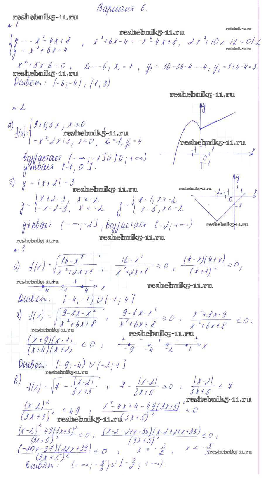 Готовая домашняя работа с ответами по Алгебре за 9 класс Зив, Гольдич Дидактические материалы Виктория плюс 2013 ФГОС - СР-9. Область определения функции. Возрастание и убывание функции вариант 6