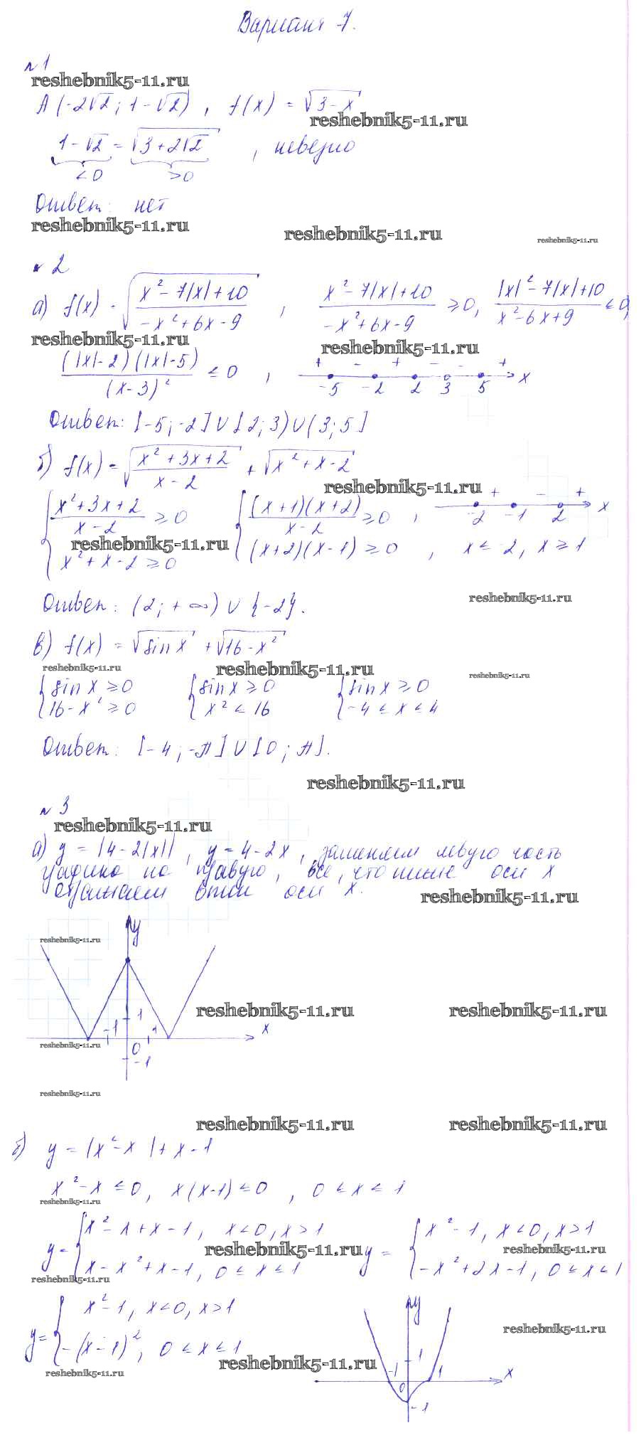 Готовая домашняя работа с ответами по Алгебре за 9 класс Зив, Гольдич Дидактические материалы Виктория плюс 2013 ФГОС - СР-9. Область определения функции. Возрастание и убывание функции вариант 7