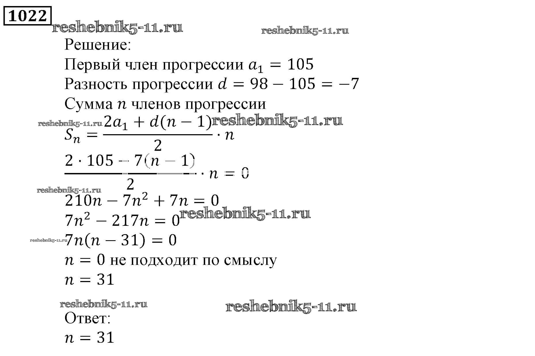 Готовая домашняя работа с ответами по Алгебре за 9 класс Мерзляк, Полонский, Якир Учебник Алгоритм успеха Вентана-граф 2016 ФГОС - Упражнения 1022