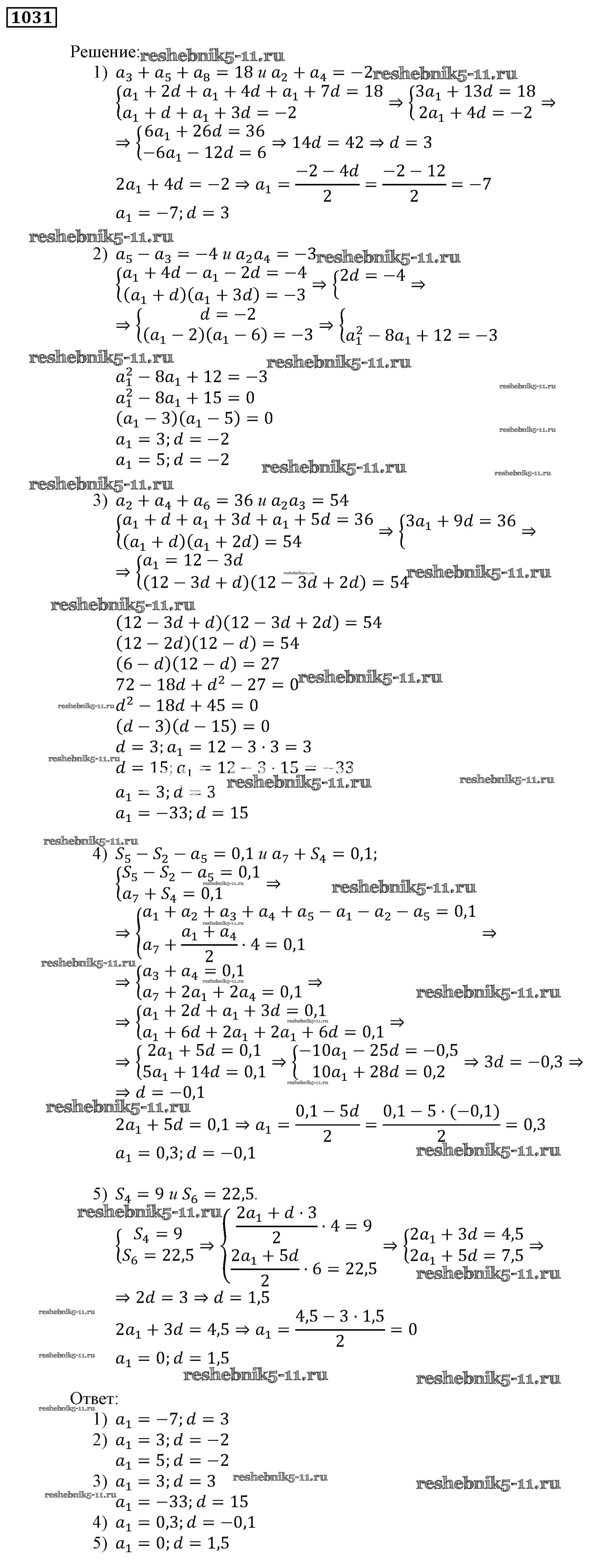Готовая домашняя работа с ответами по Алгебре за 9 класс Мерзляк, Полонский, Якир Учебник Алгоритм успеха Вентана-граф 2016 ФГОС - Упражнения 1031