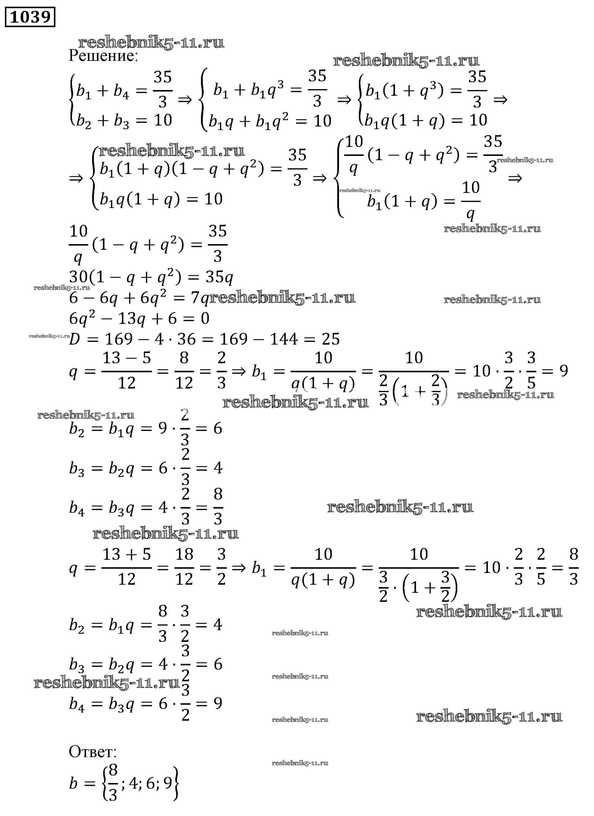 Готовая домашняя работа с ответами по Алгебре за 9 класс Мерзляк, Полонский, Якир Учебник Алгоритм успеха Вентана-граф 2016 ФГОС - Упражнения 1039