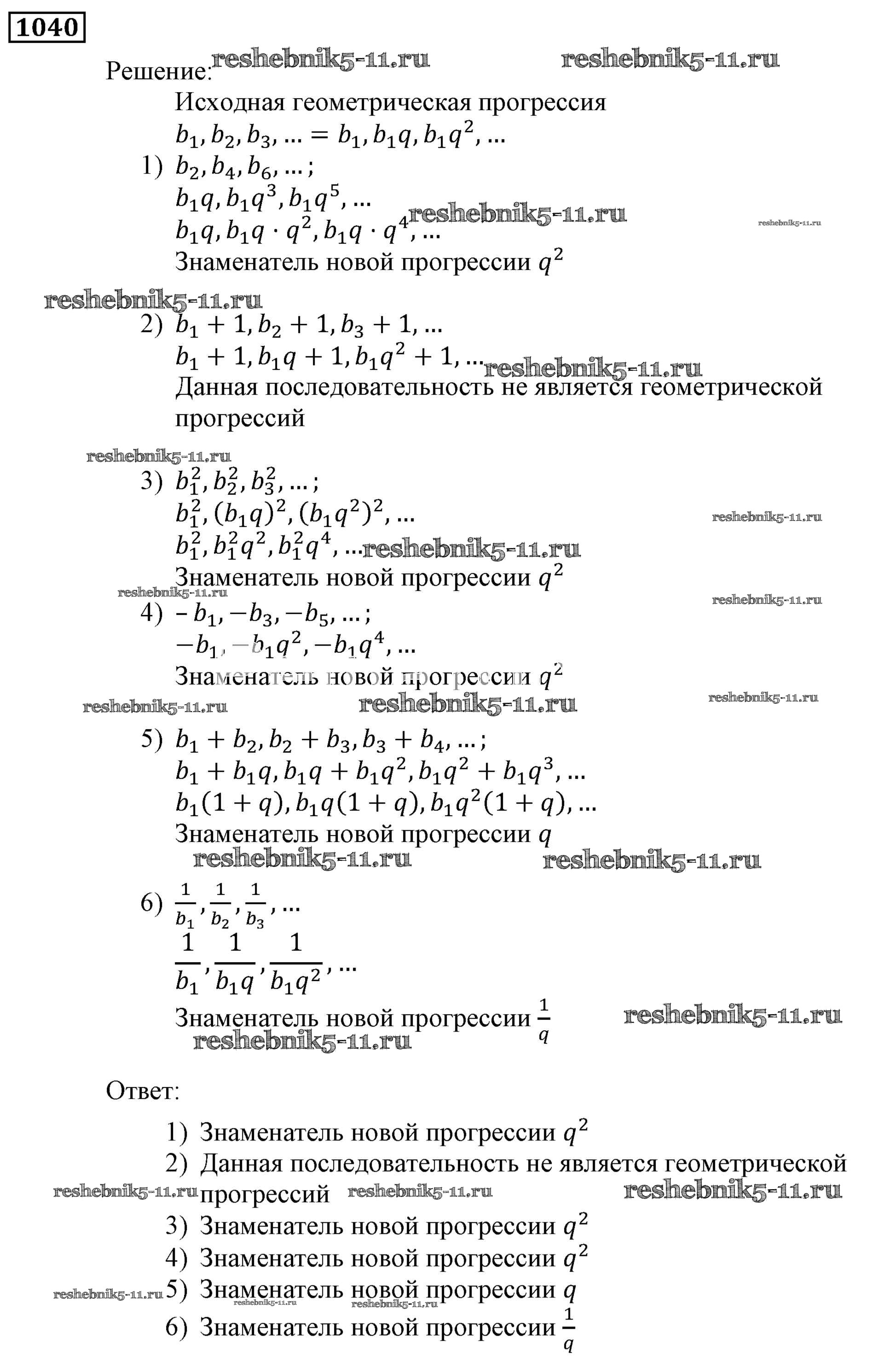 Готовая домашняя работа с ответами по Алгебре за 9 класс Мерзляк, Полонский, Якир Учебник Алгоритм успеха Вентана-граф 2016 ФГОС - Упражнения 1040