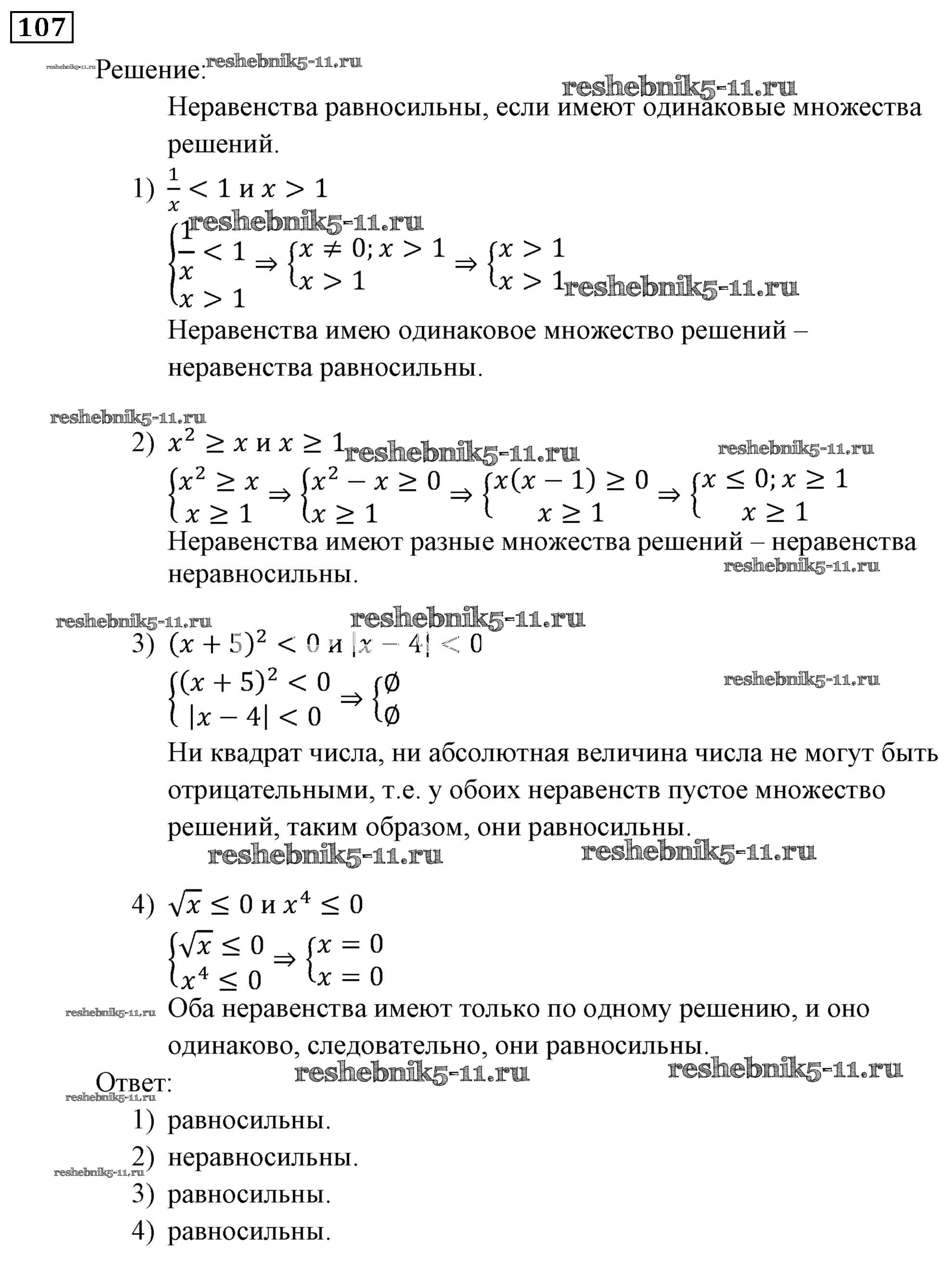 Готовая домашняя работа с ответами по Алгебре за 9 класс Мерзляк, Полонский, Якир Учебник Алгоритм успеха Вентана-граф 2016 ФГОС - Упражнения 107
