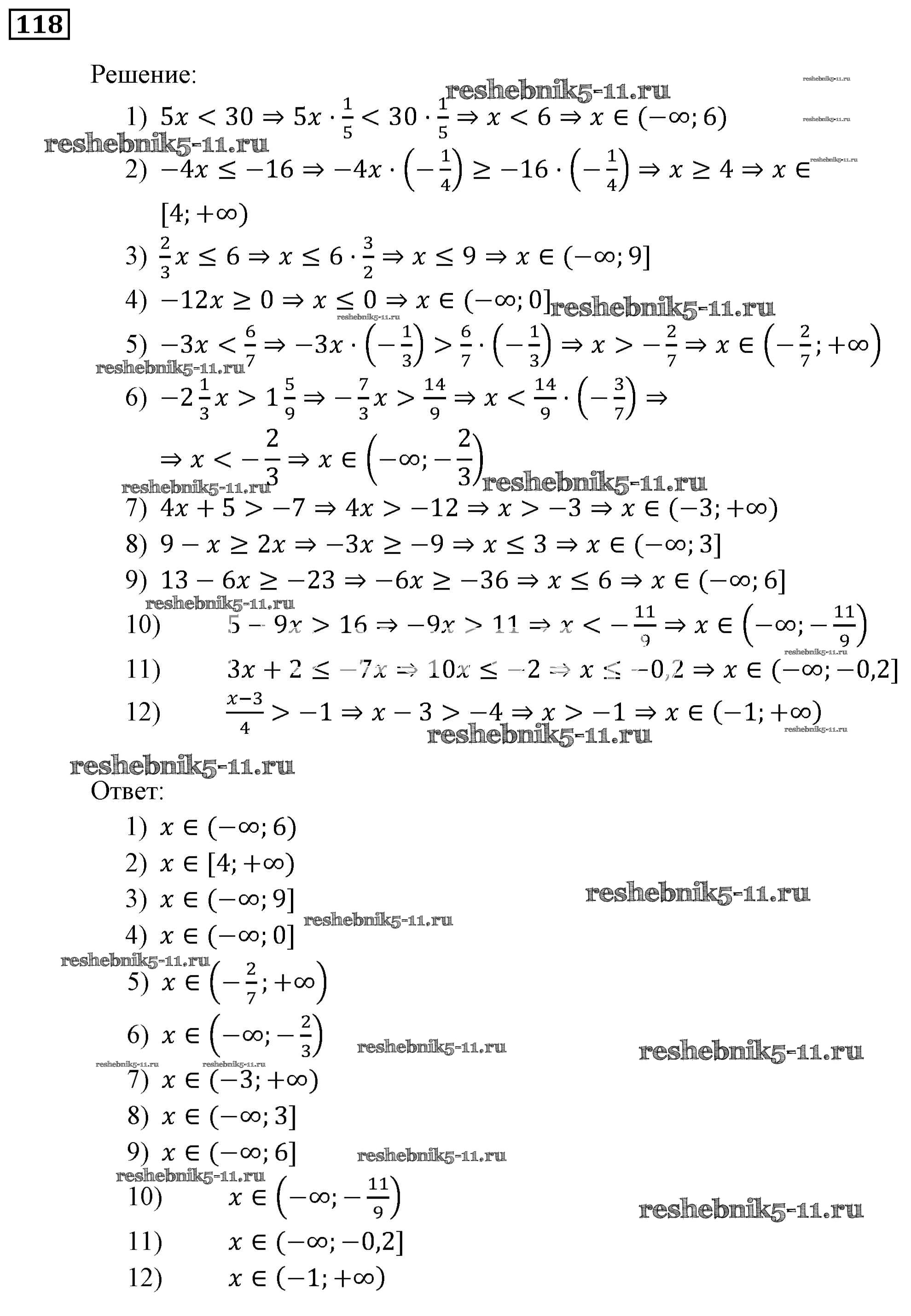 Готовая домашняя работа с ответами по Алгебре за 9 класс Мерзляк, Полонский, Якир Учебник Алгоритм успеха Вентана-граф 2016 ФГОС - Упражнения 118