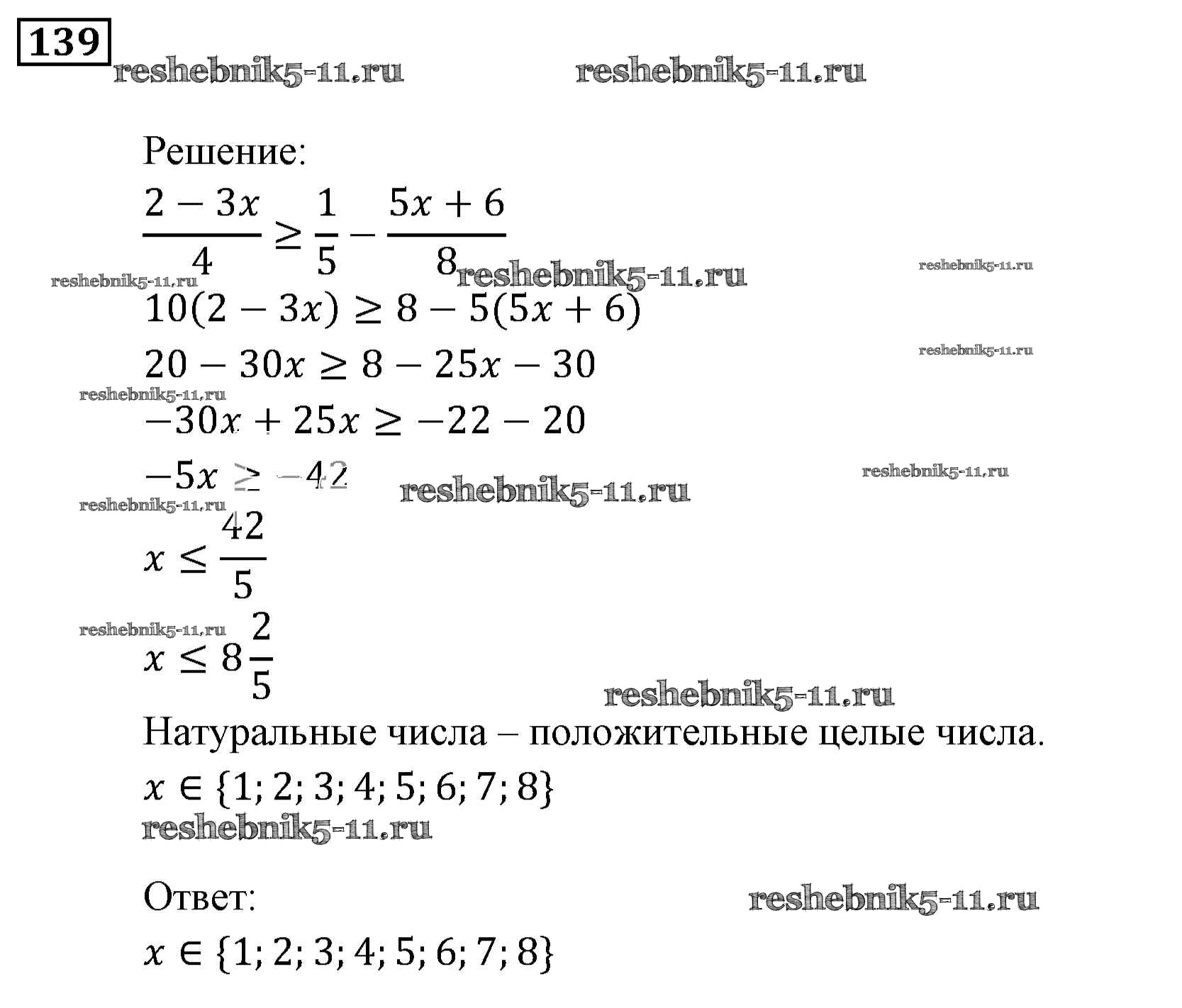 Готовая домашняя работа с ответами по Алгебре за 9 класс Мерзляк, Полонский, Якир Учебник Алгоритм успеха Вентана-граф 2016 ФГОС - Упражнения 139