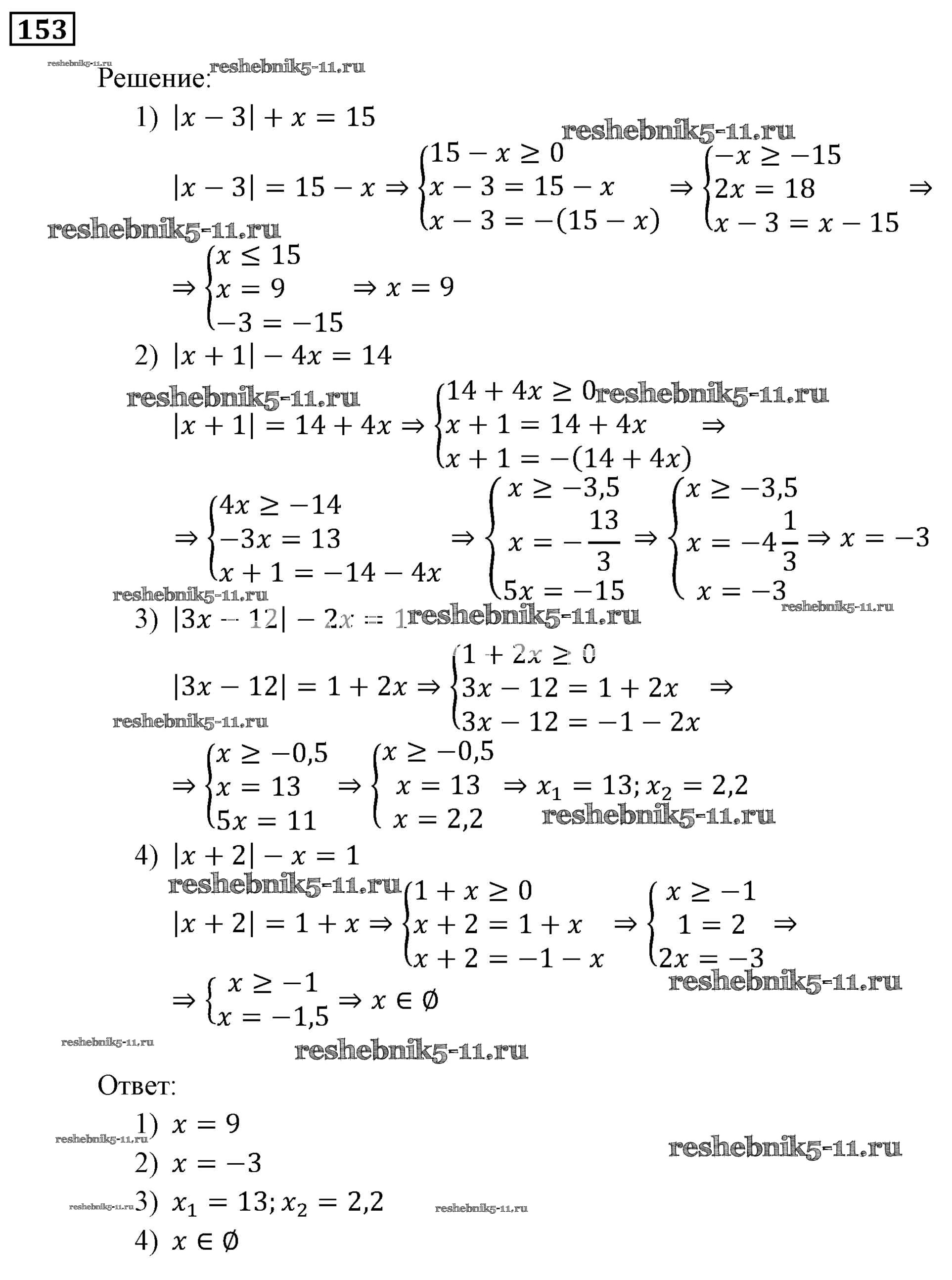Готовая домашняя работа с ответами по Алгебре за 9 класс Мерзляк, Полонский, Якир Учебник Алгоритм успеха Вентана-граф 2016 ФГОС - Упражнения 153