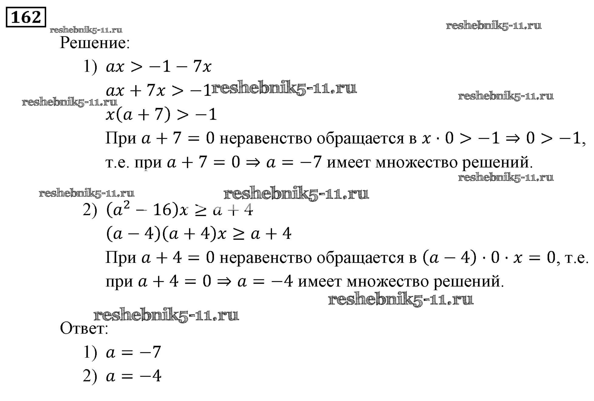 Готовая домашняя работа с ответами по Алгебре за 9 класс Мерзляк, Полонский, Якир Учебник Алгоритм успеха Вентана-граф 2016 ФГОС - Упражнения 162