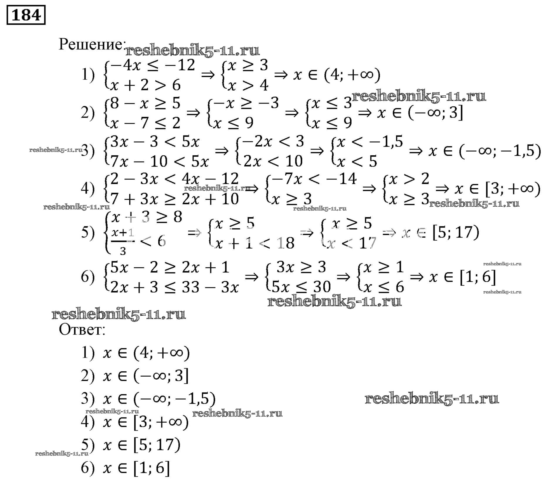 Готовая домашняя работа с ответами по Алгебре за 9 класс Мерзляк, Полонский, Якир Учебник Алгоритм успеха Вентана-граф 2016 ФГОС - Упражнения 184