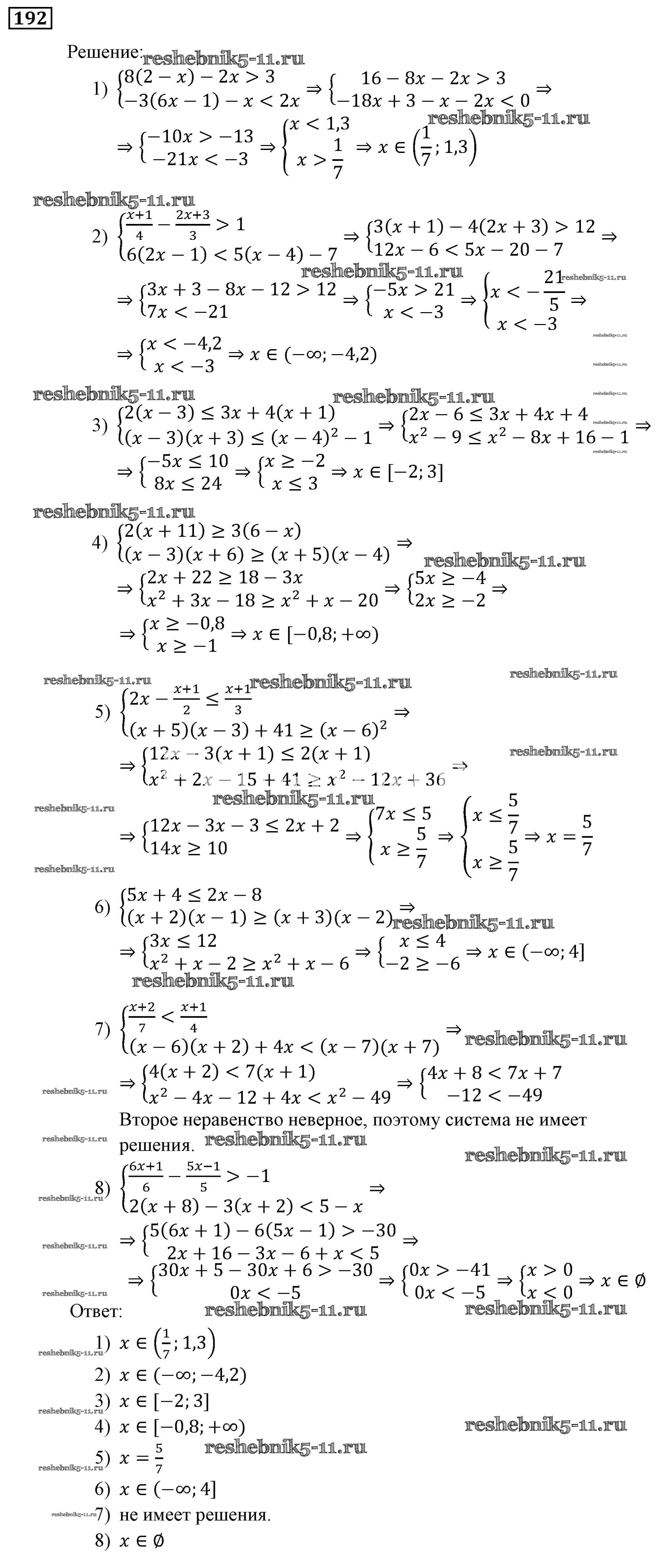 Готовая домашняя работа с ответами по Алгебре за 9 класс Мерзляк, Полонский, Якир Учебник Алгоритм успеха Вентана-граф 2016 ФГОС - Упражнения 192