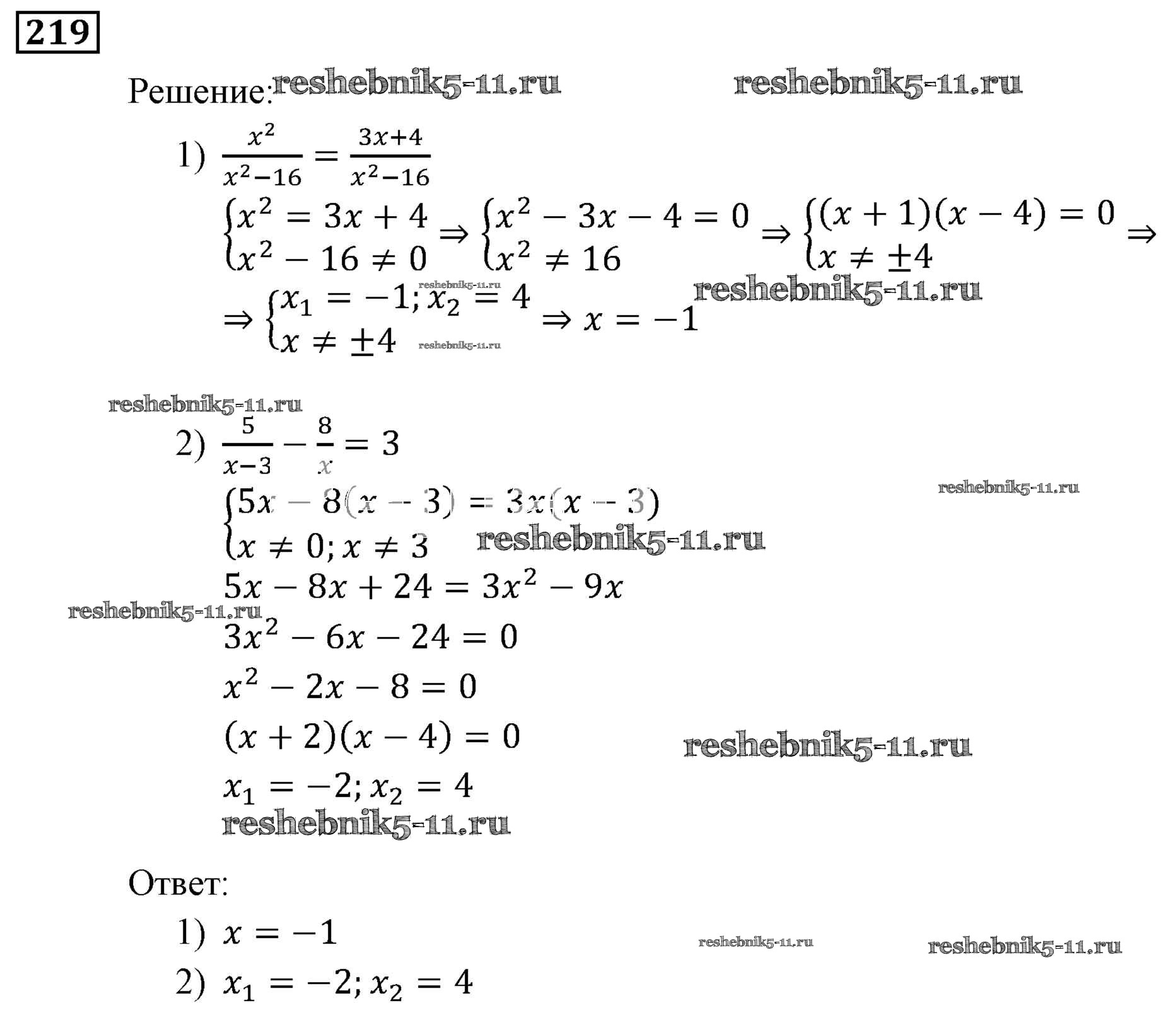 Готовая домашняя работа с ответами по Алгебре за 9 класс Мерзляк, Полонский, Якир Учебник Алгоритм успеха Вентана-граф 2016 ФГОС - Упражнения 219