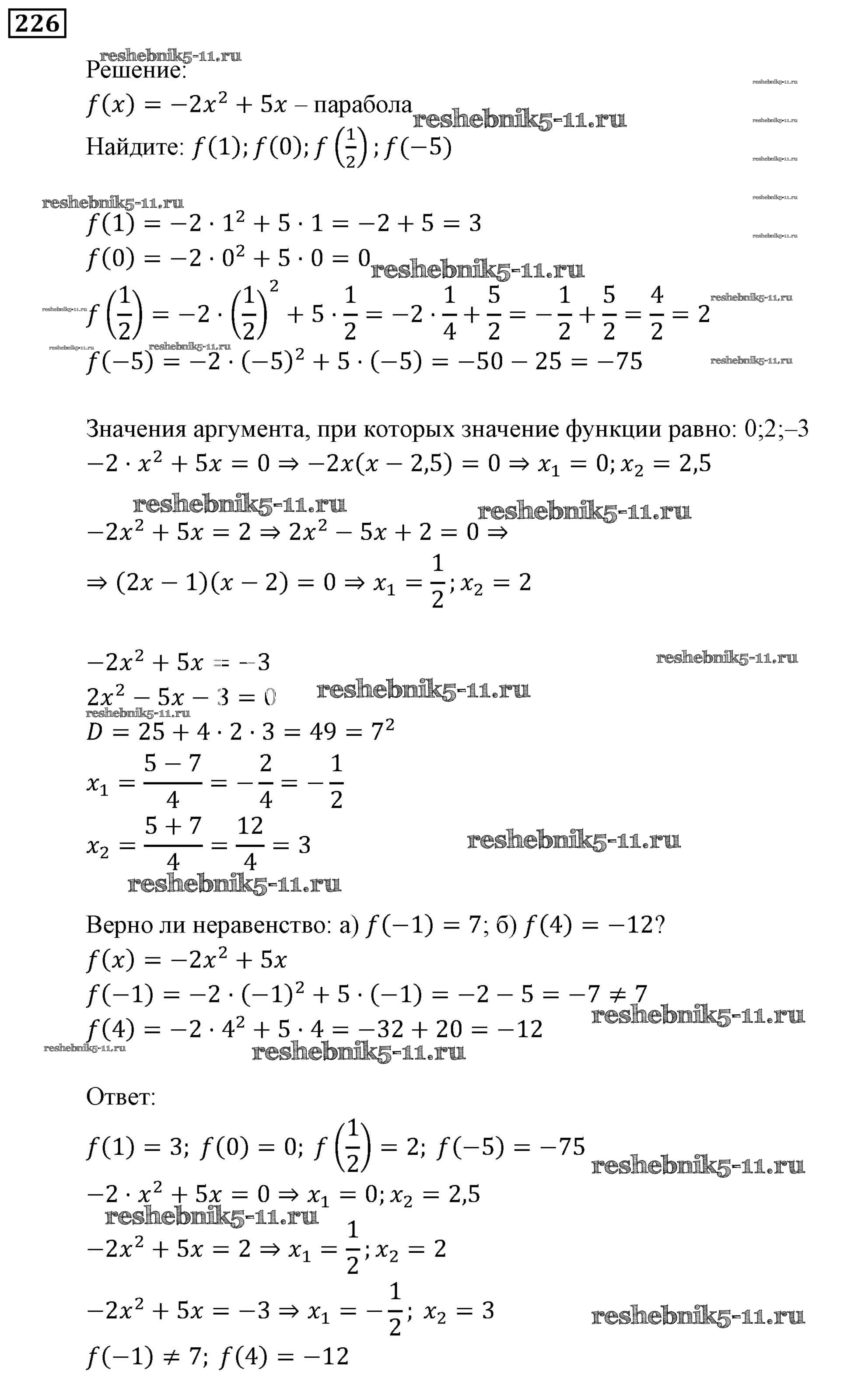 Готовая домашняя работа с ответами по Алгебре за 9 класс Мерзляк, Полонский, Якир Учебник Алгоритм успеха Вентана-граф 2016 ФГОС - Упражнения 226