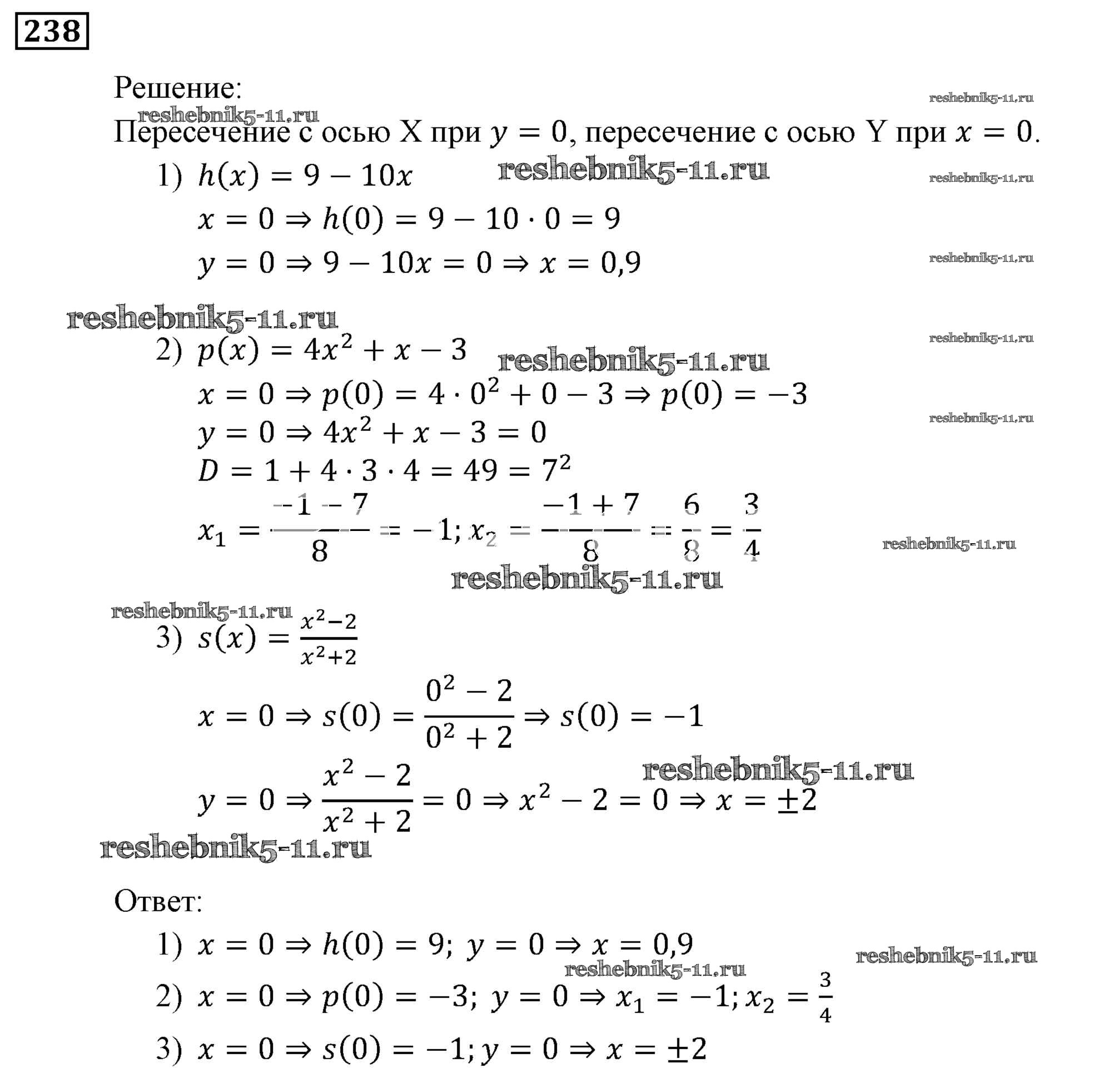 Готовая домашняя работа с ответами по Алгебре за 9 класс Мерзляк, Полонский, Якир Учебник Алгоритм успеха Вентана-граф 2016 ФГОС - Упражнения 238