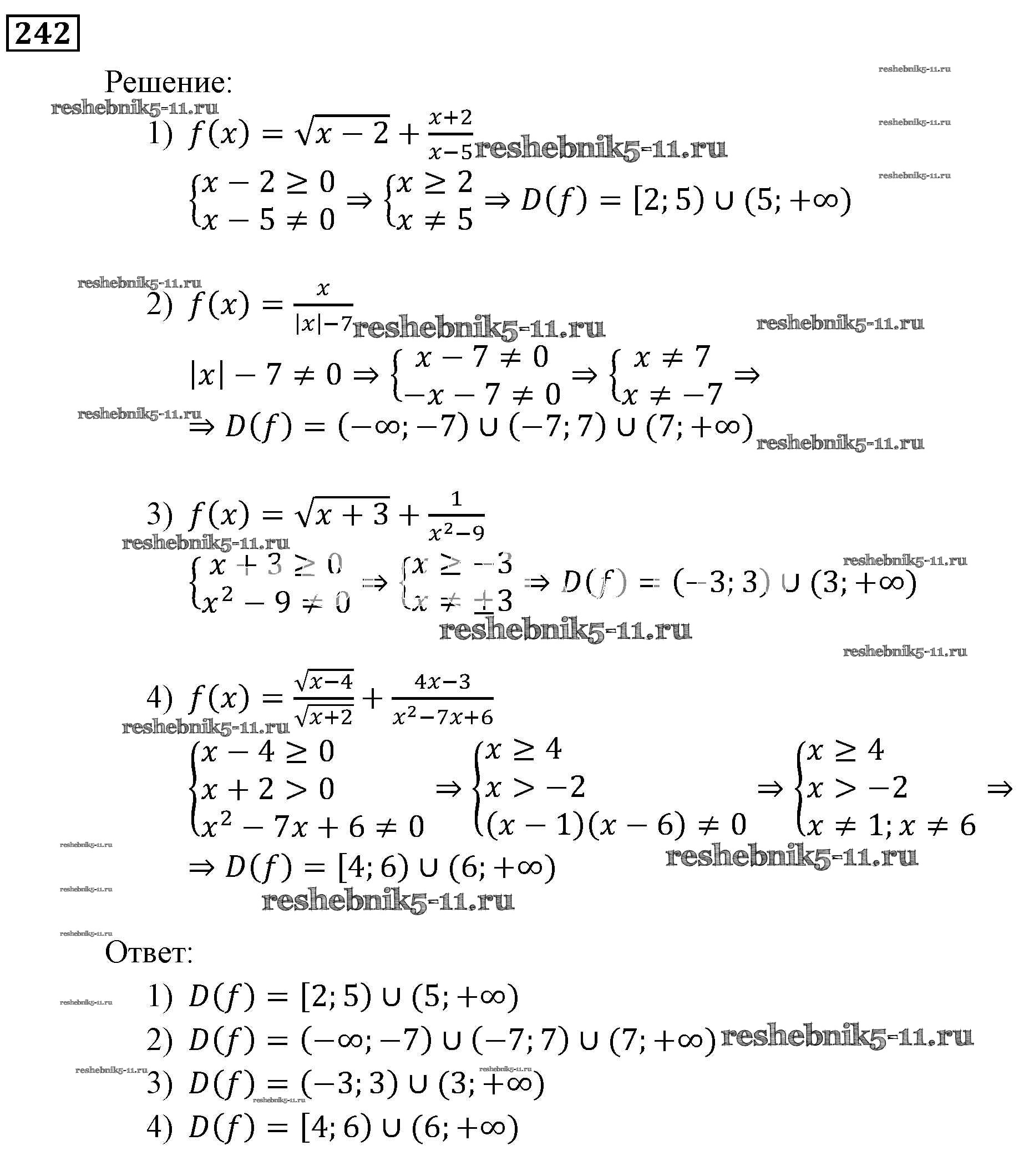 Готовая домашняя работа с ответами по Алгебре за 9 класс Мерзляк, Полонский, Якир Учебник Алгоритм успеха Вентана-граф 2016 ФГОС - Упражнения 242