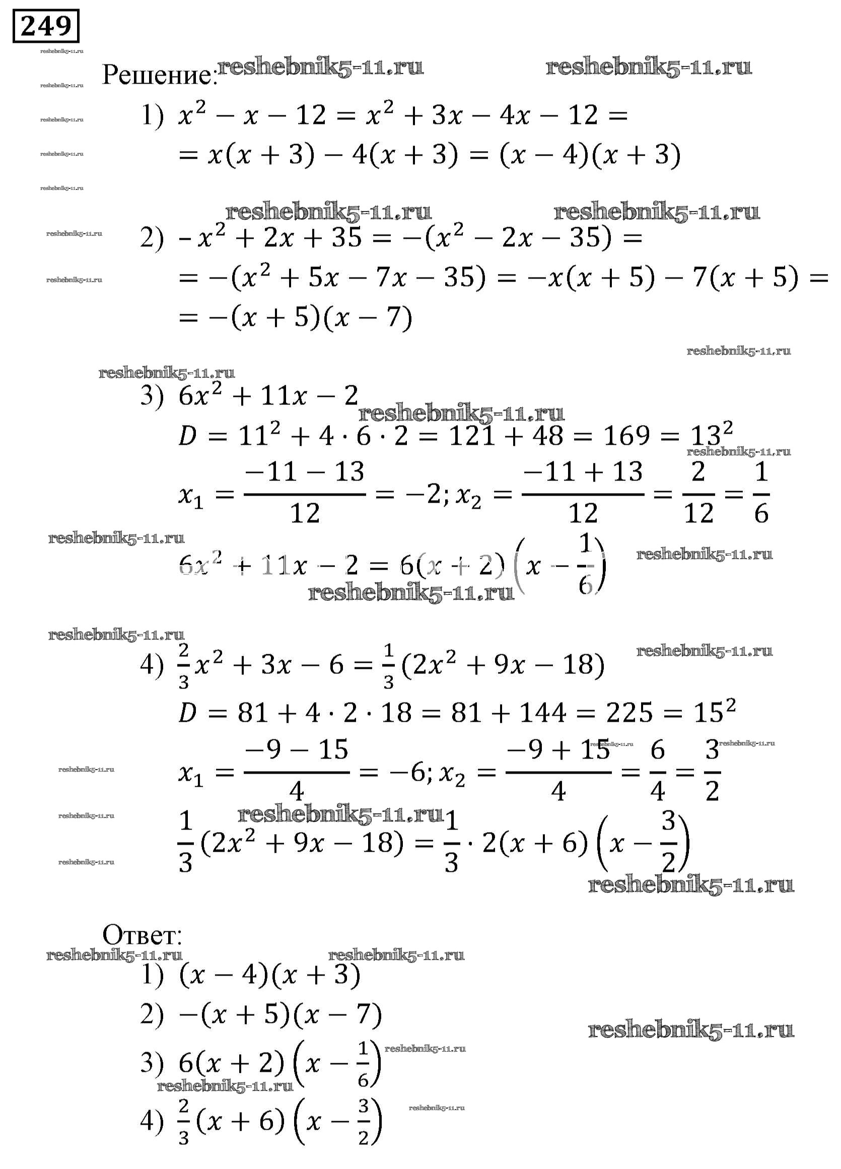 Готовая домашняя работа с ответами по Алгебре за 9 класс Мерзляк, Полонский, Якир Учебник Алгоритм успеха Вентана-граф 2016 ФГОС - Упражнения 249